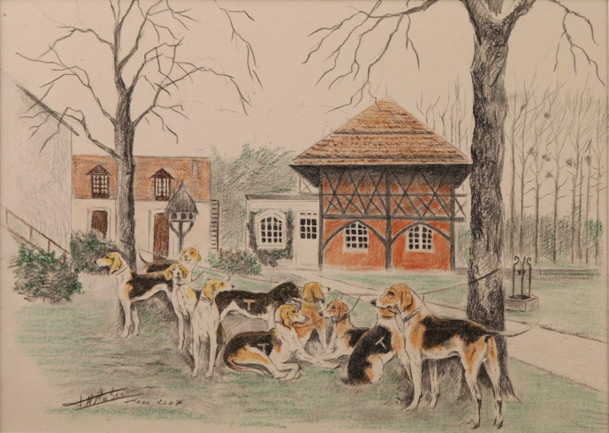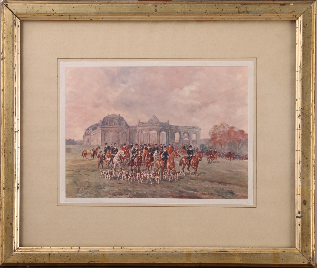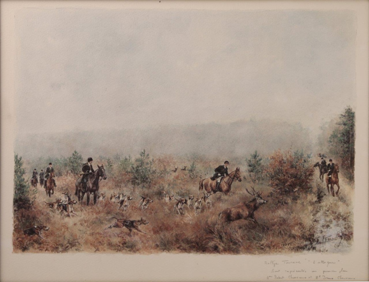 JOINT: une lithographie représentant une "Attaque" du Rallye Touraine en 1985 avec Mme Robert Cheuvreux et Me Bruno Cheuvreux" (25 x 35 cm) une reproduction en couleur d'une oeuvre de Karl Reille (13 x 18cm)