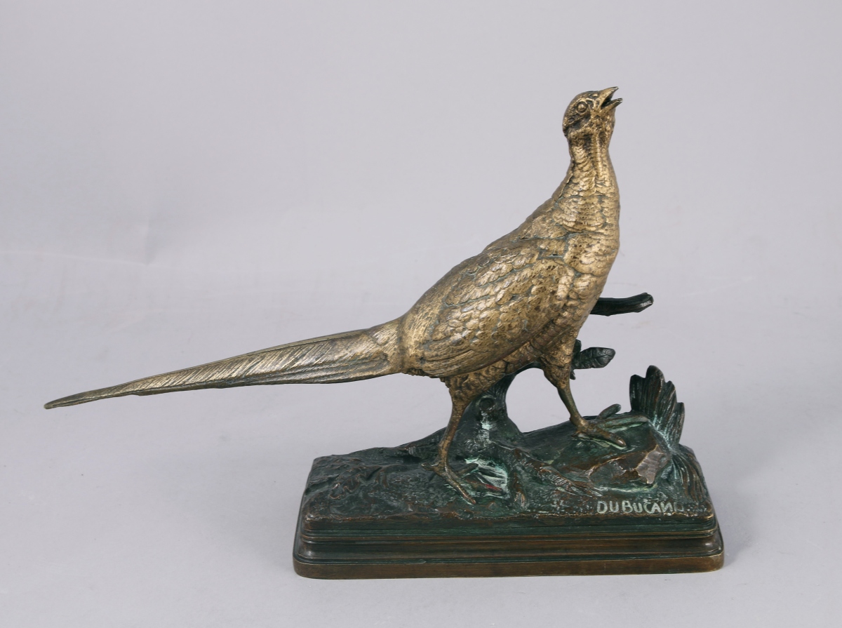 Alfred DUBUCAND (Paris, 1828 - Paris, 1894)Faisan criaillant. Bronze à...