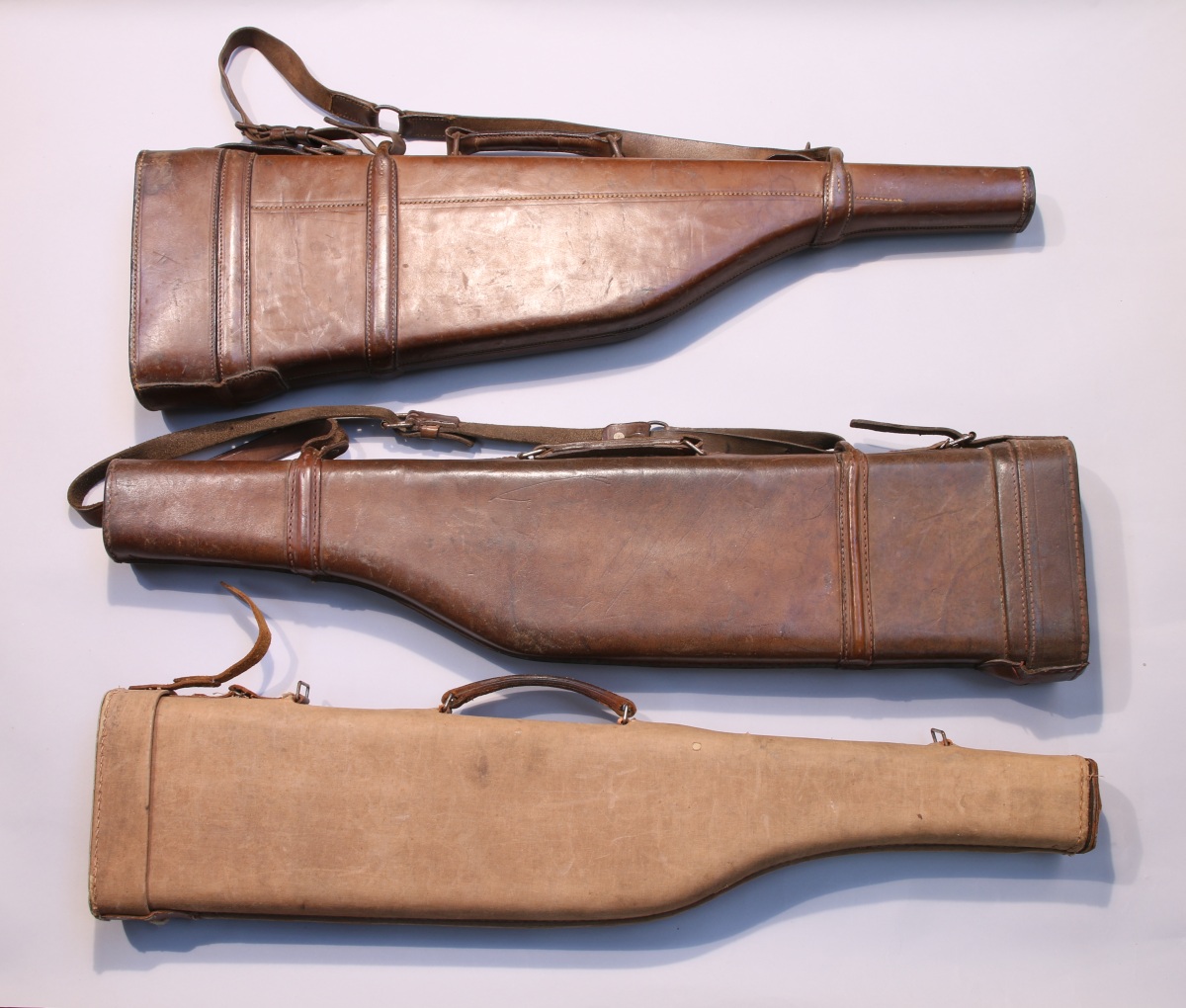 TROIS JAMBONS pour FUSIL DE CHASSE :- Deux en cuir....