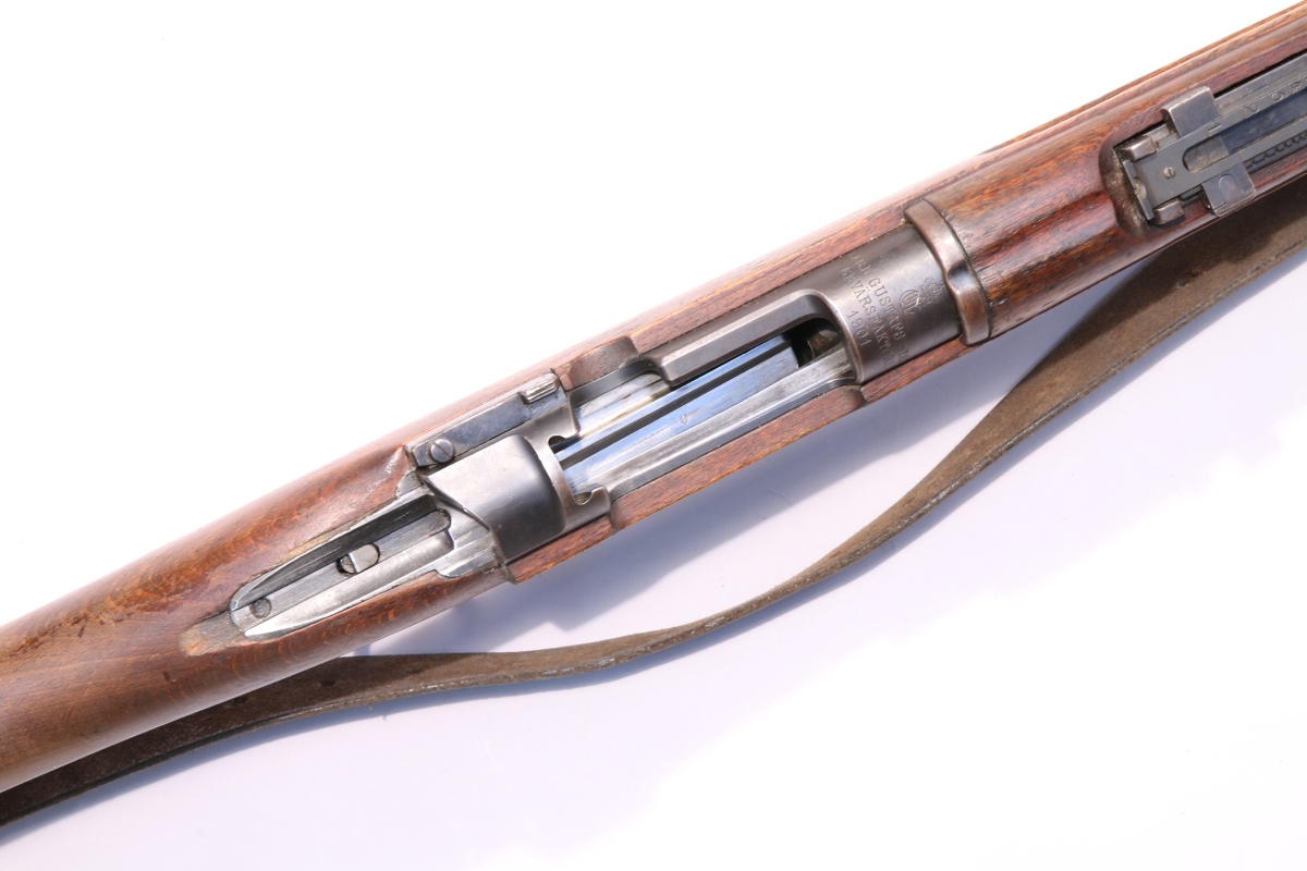 CARABINE dite "MAUSER SUÉDOIS", M96, calibre 6,5x57. Crosse avec pastille. Chambre signée "Carl Gustafs stats / Gevärsfaktori / 1901". N°98042. Canon fileté.