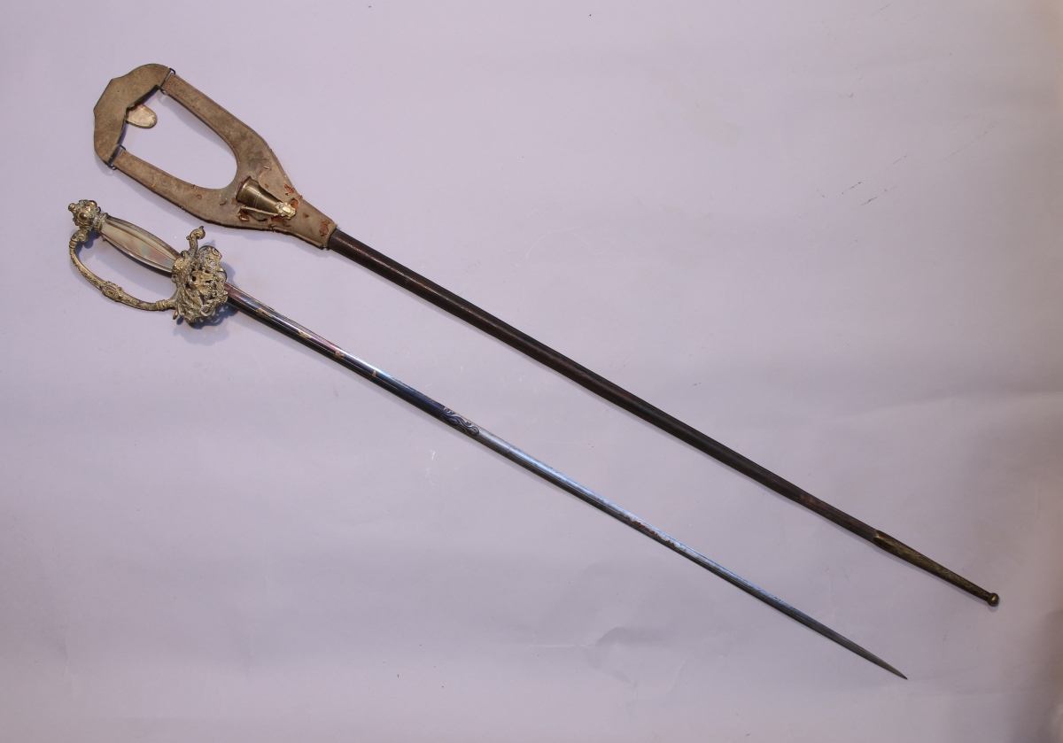 Long. 87,5, Long. de la lame: 73 cm. (usures d'usage, infime manque à une plaquette, la pointe légèrement accidentée)