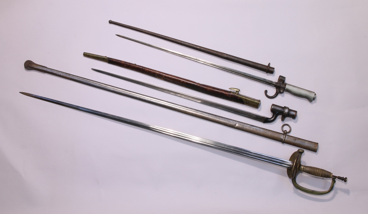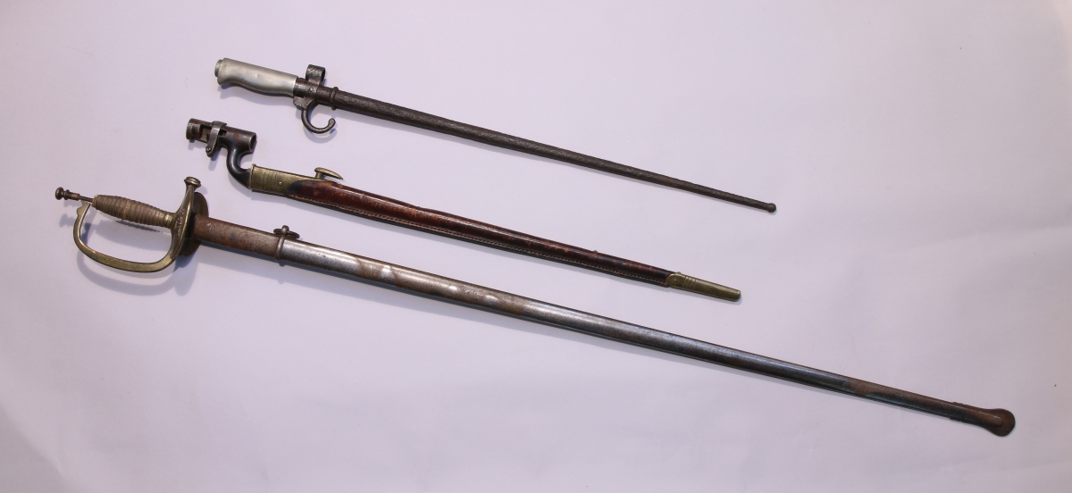 Réunion de TROIS ARMES BLANCHES :- BAÏONNETTE à douille à...