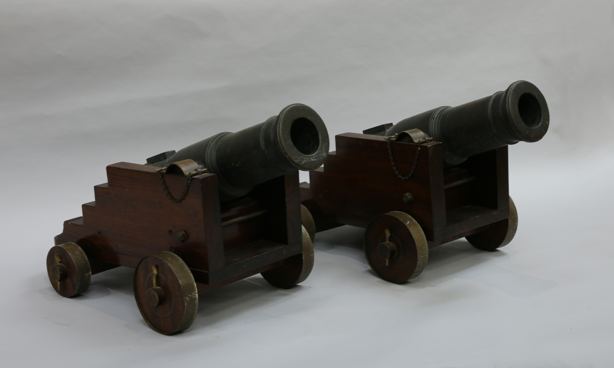 PAIRE DE CANONS DE MARINE dits "CARONADES" en bronze.