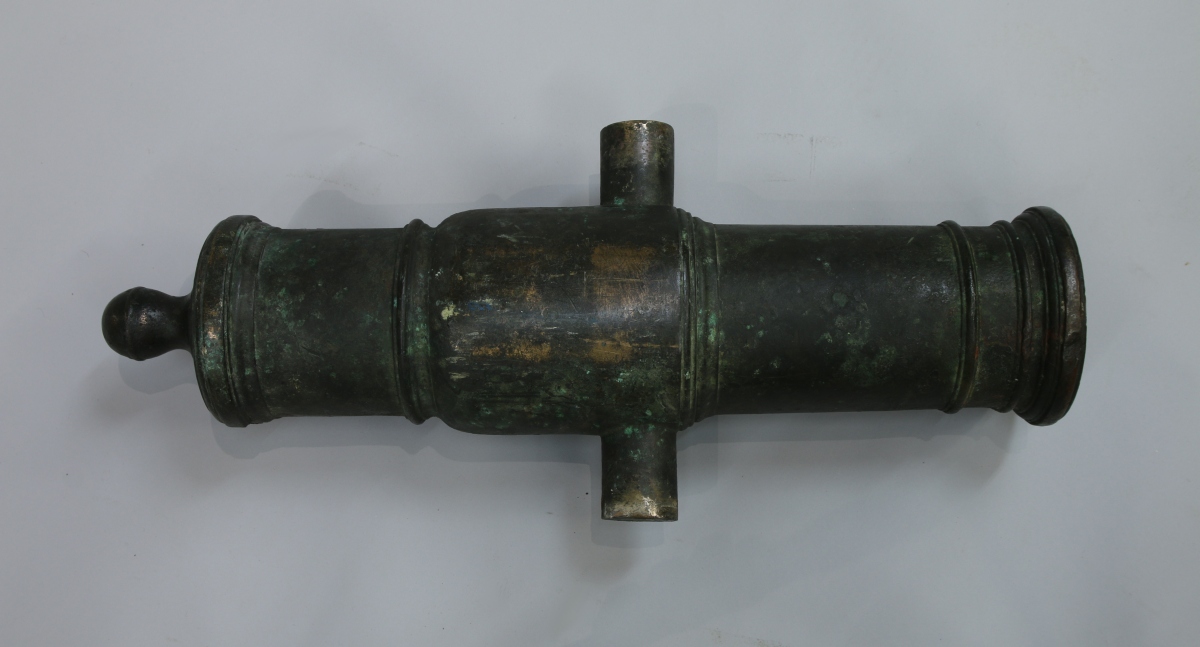 Long. 64, Diam à l'extrémité: 14,5, Diam. de la bouche: 8,5 cm. (petits accidents)
