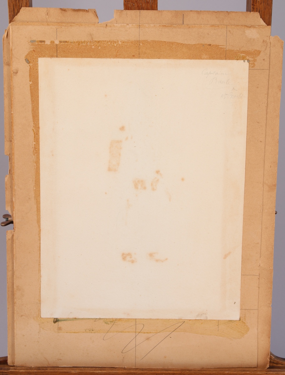 Crayon et aquarelle monogrammé "CB". Inscription au dos "Capitaine Basile ou Ct Breclit".