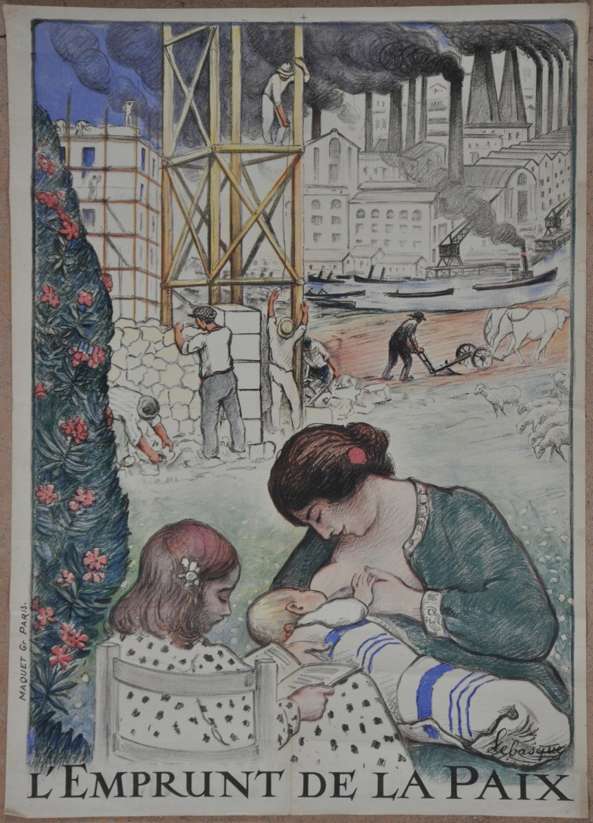 - "Emprunt Pour La Paix" par Henri Baptiste LEBASQUE (1865-1937). Affiche imprimée par Maquet Gr Paris, 1920. 120 x 80 cm. Bibliographie: Remy Paillard, "Affiches 14-18", 1986, reproduite p. 275.
