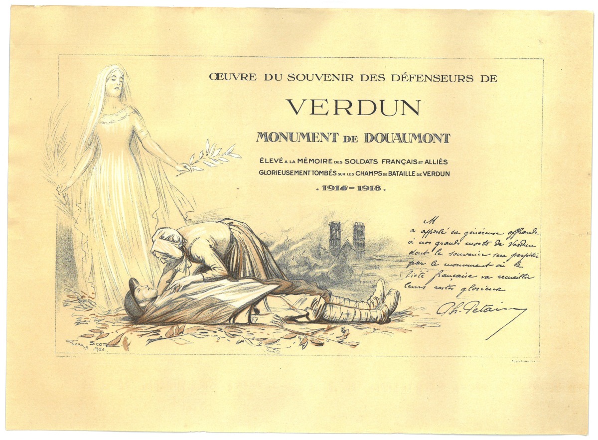 MONUMENT DE DOUAUMONT. 19 AFFICHETTES par Georges SCOTT (1873-1943) de l'oeuvre du souvenir des défenseurs de Verdun. 1920.