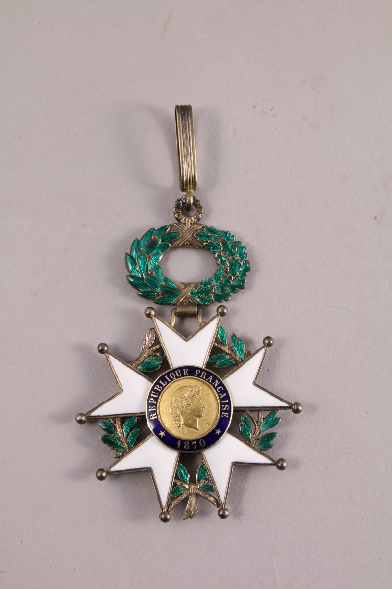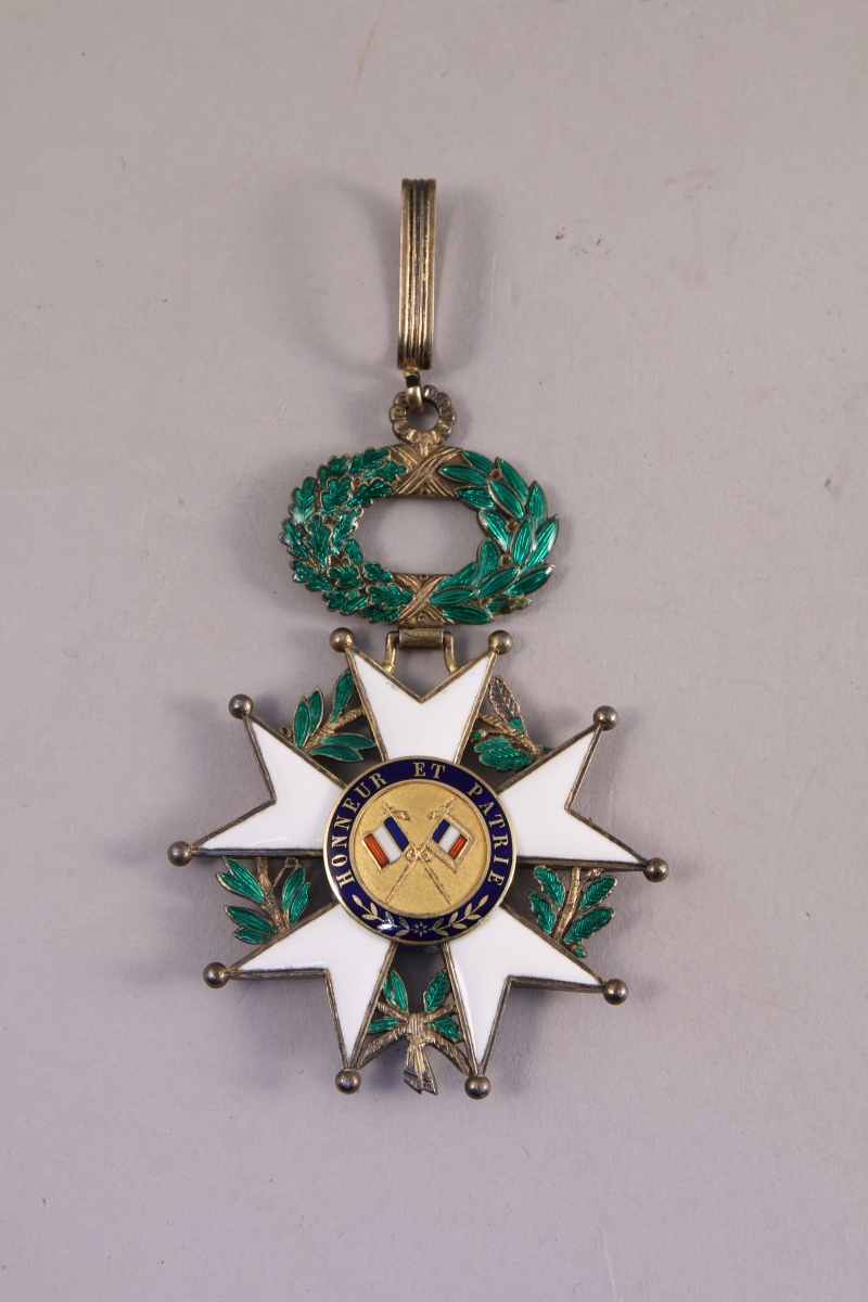 FRANCE. ORDRE DE LA LÉGION D'HONNEUR, IIIe République, bijou de commandeur en vermeil et émail, centre en or, les branches soulignées d'un filet (éclats, manque une feuille de laurier, bélière à refixer).
