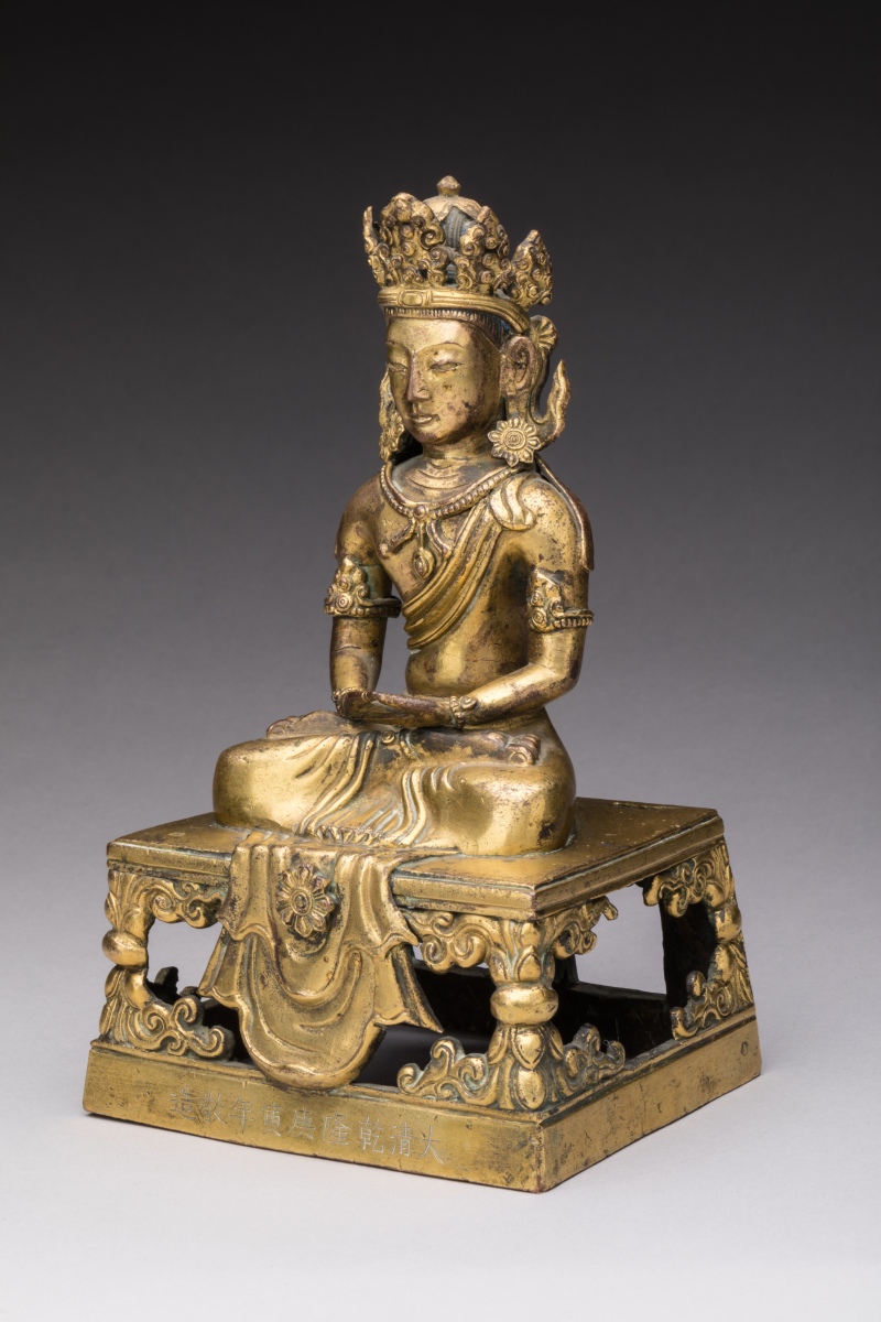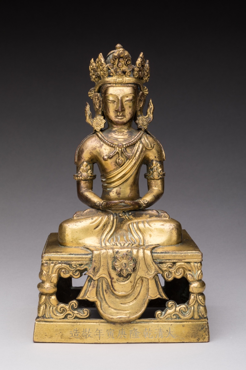 CHINA, QIANLONG period. A gilt bronze STATUETTE figuring AMITAYUS. Inscription on the base, 1770.