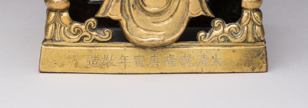 Marque incisée sur la façade du socle: "Da Qing Qianlong genyin nian jingzao" (1770).
