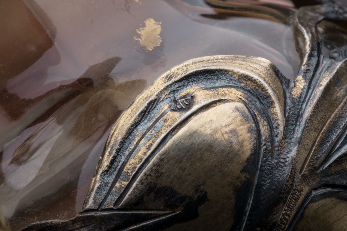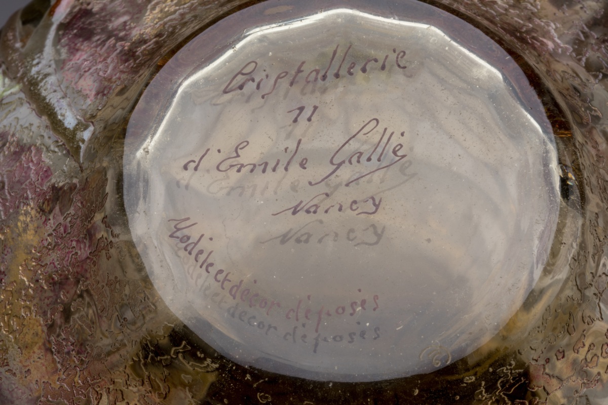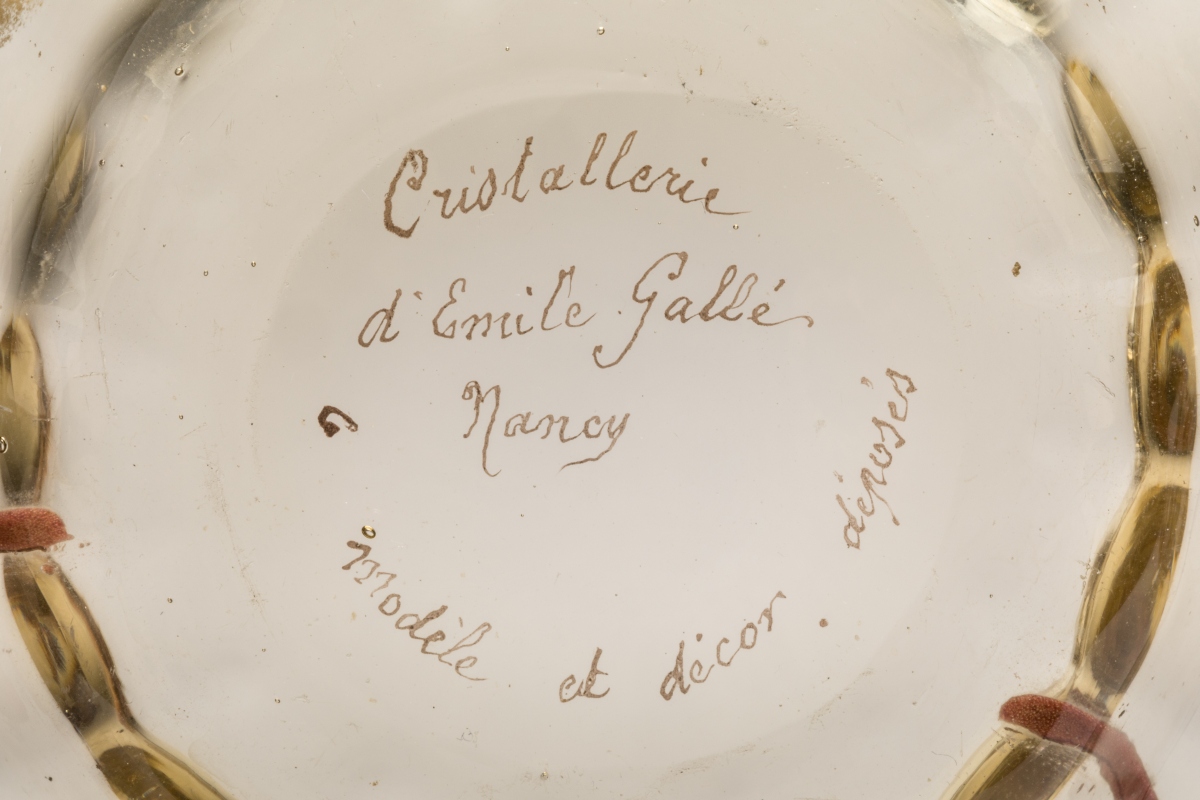 Marques peintes à l'or sous la base "Cristallerie d'Émile Gallé, Nancy, modèle et décor déposés". Poinçon Minerve.