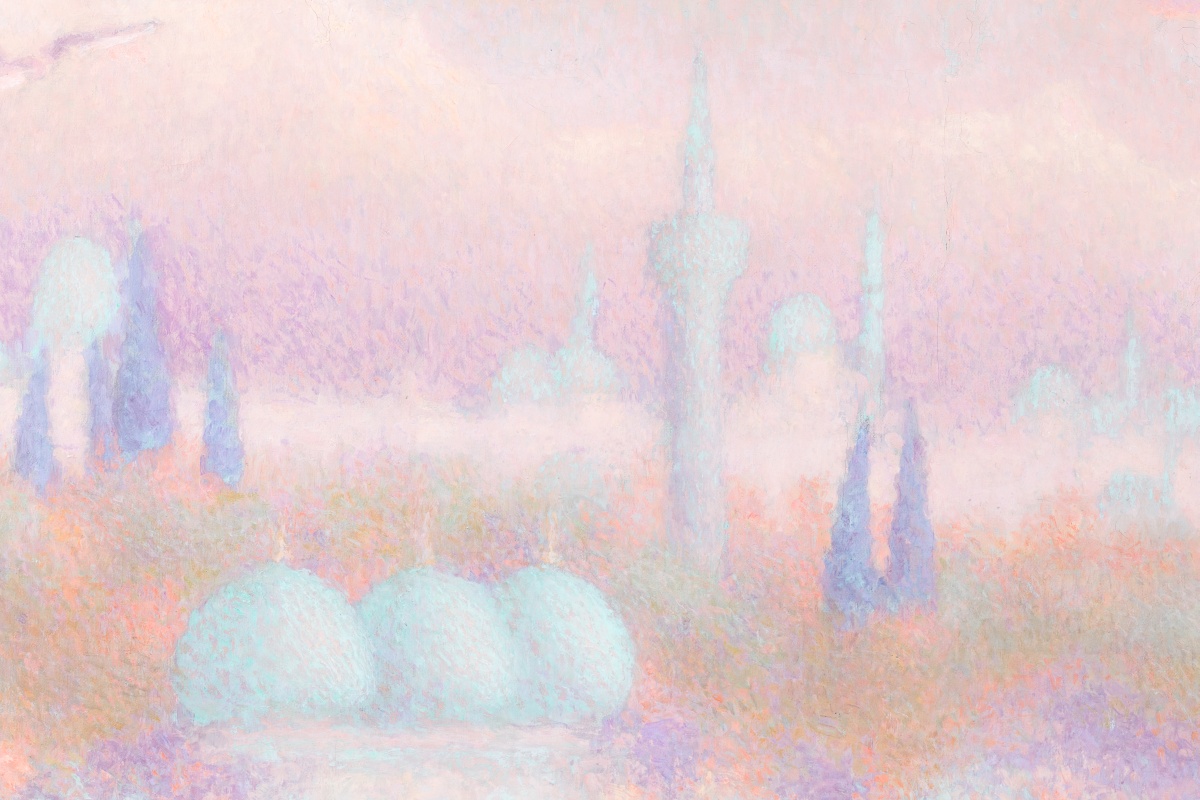 "Les Roses d'Ispahan" est une oeuvre inspirée de la mélodie de Gabriel Fauré, "Les Roses d'Ispahan", écrite en 1884. Ces fleurs sont d'ailleurs visibles au premier plan du tableau. La ville d'Ispahan aurait quant à elle été décrite par Pierre Loti, grand ami de Lévy Dhurmer, dans son ouvrage publié en 1904, "vers Ispahan".