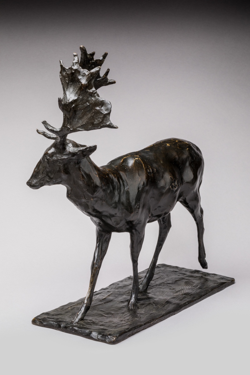 Rembrandt BUGATTI. The Fallow Deer. Brown patinated bronze numbered 1. Signed " R.Bugatti ". Founder's stamp. Lost wax casting by Hébrard limited to three specimens.