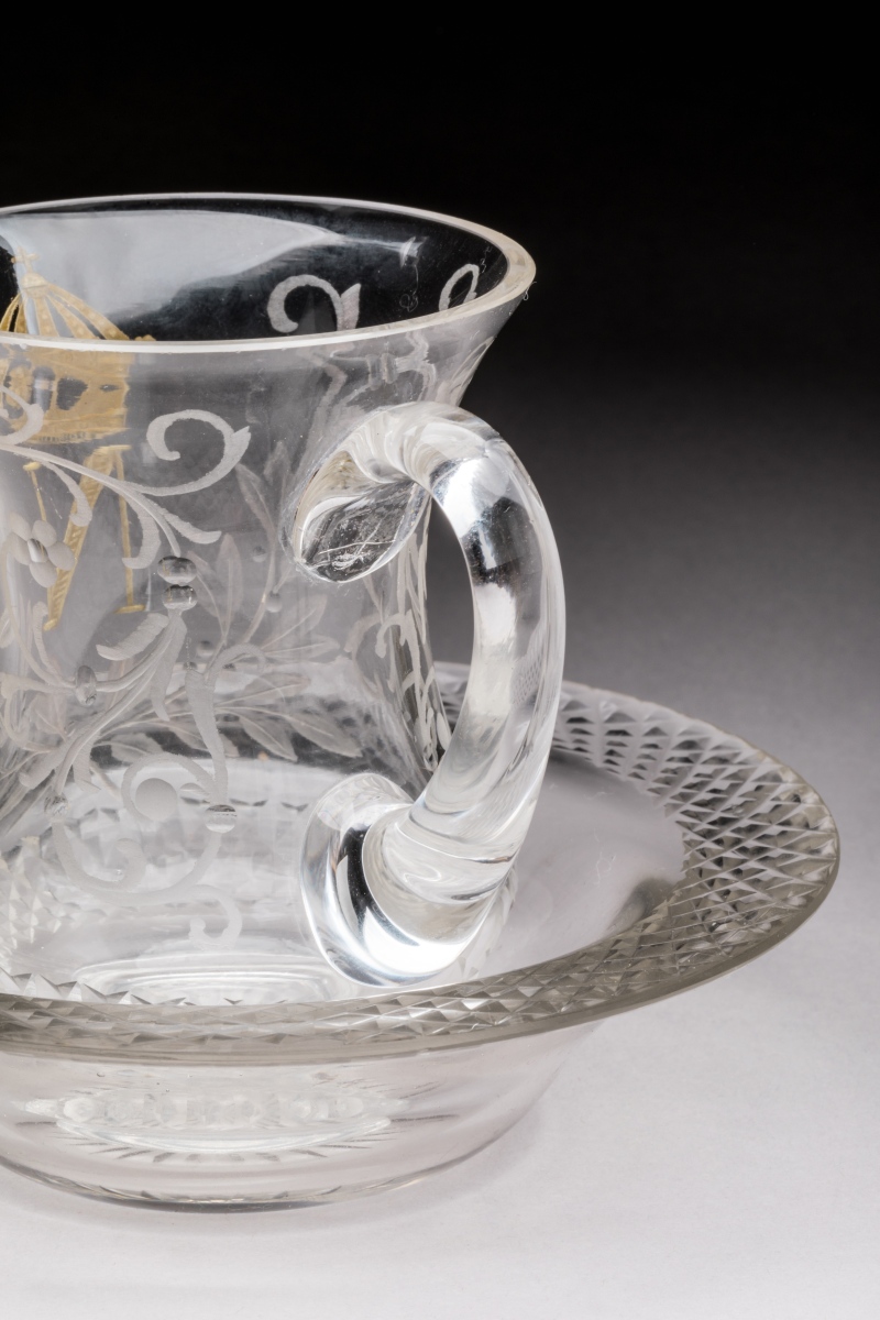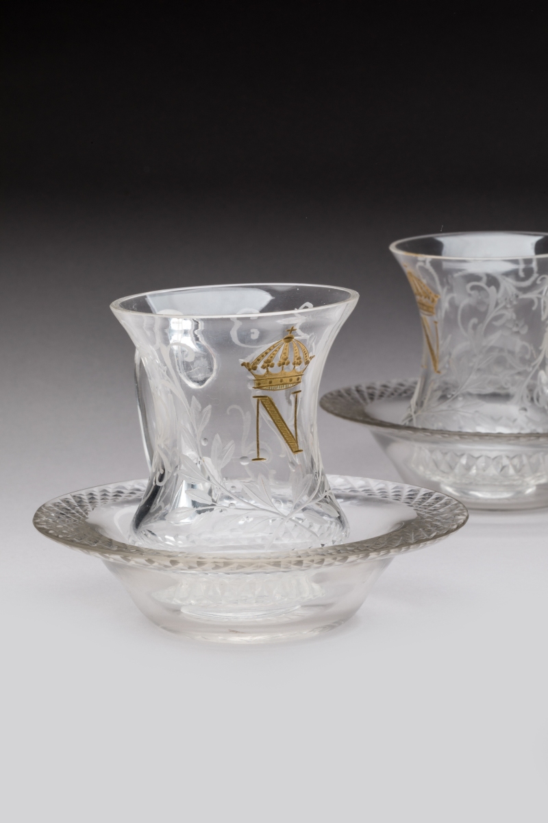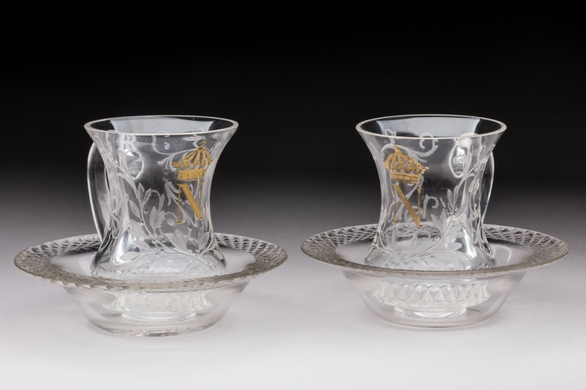 Manufacture de S. M. l'Impératrice des Cristaux du Montcenis. A pair of mouth-blown crystal SHERBET CUPS and SAUCERS from the service of Napoleon Ier.