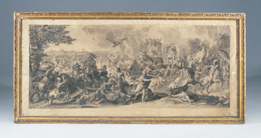 Paire de dessins à l'encre et sépia d'après les tableaux de LE BRUN, peintre du roi, directeur de l'Académie - gravés par G. AUDRAN.