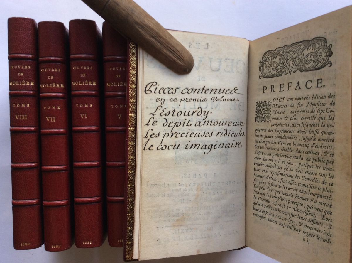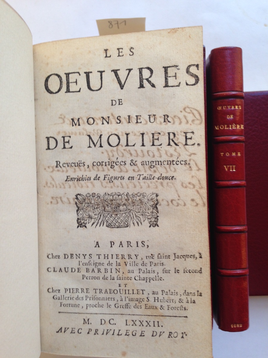 Les Oeuvres de Monsieur de Molière. Reveues, corrigées etaugmentées, enrichies de figures en taille douce. (Suivies de: "Les Oeuvres posthumes de Monsieur de Molière, imprimées pour la première fois en 1682")