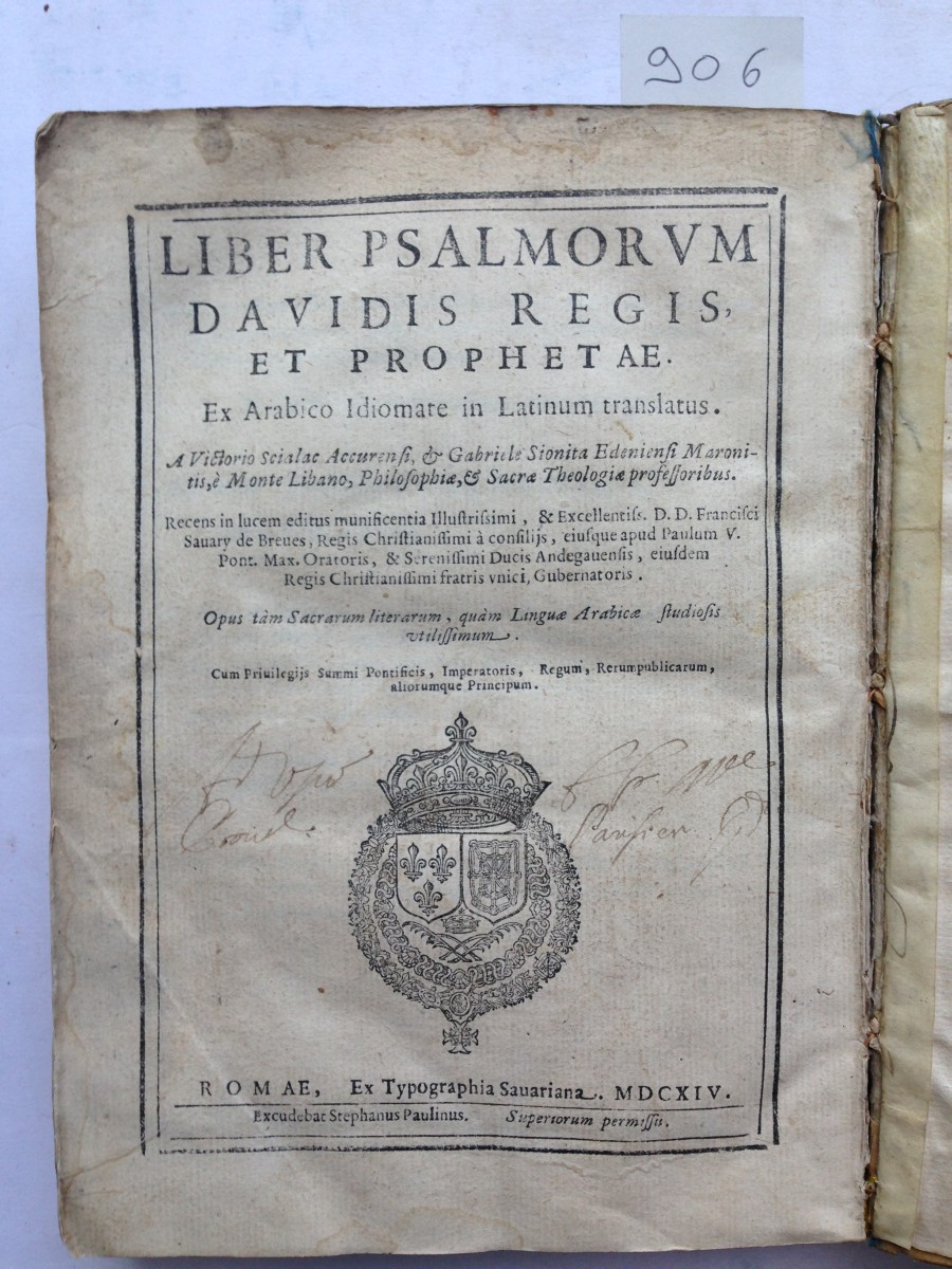 Liber Psalmorum Davidis Regis et Prophetae ex Arabico Idiomate in Latinum translatus...