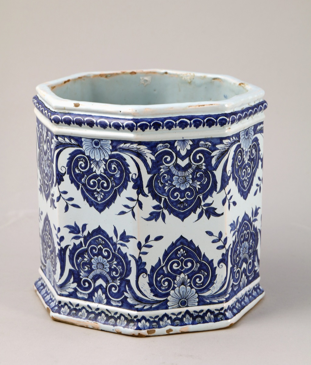 dans le goût de ROUEN. SEAU À BOUTEILLES en FAÏENCE à décor de lambrequins.