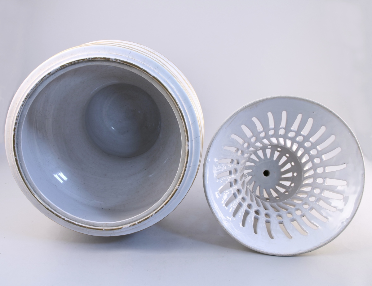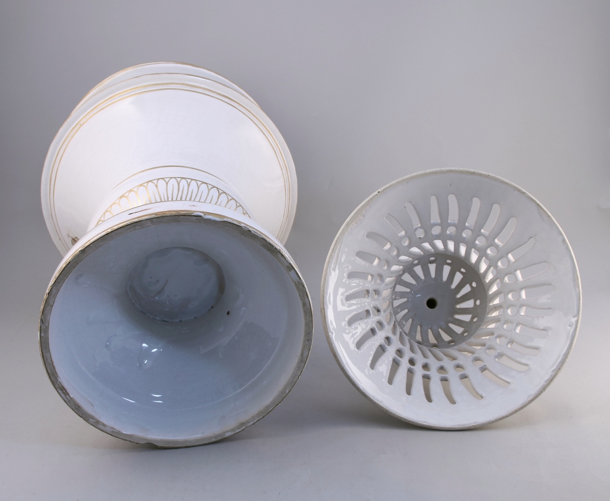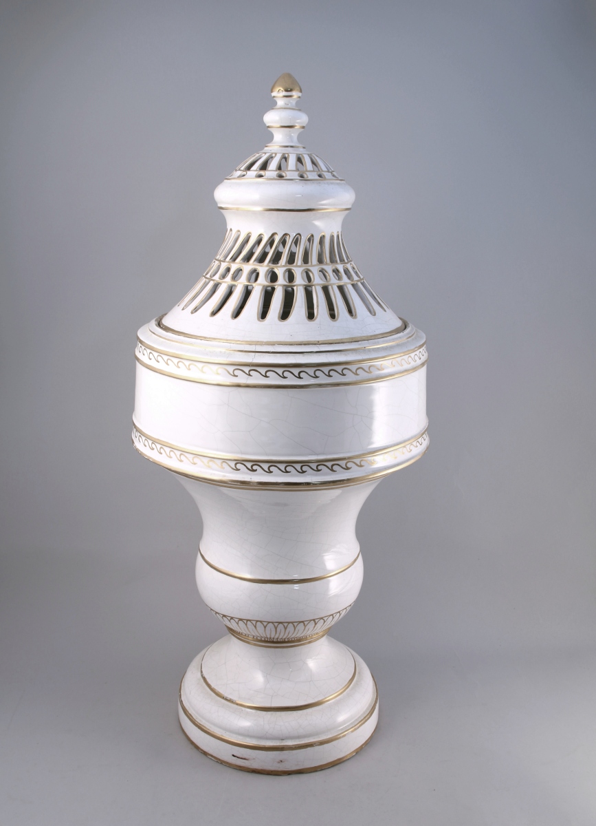 SAINT-CLÉMENT, faïence fine. Important POT POURRI de forme balustre. Couvercle ajouré. XIXe.