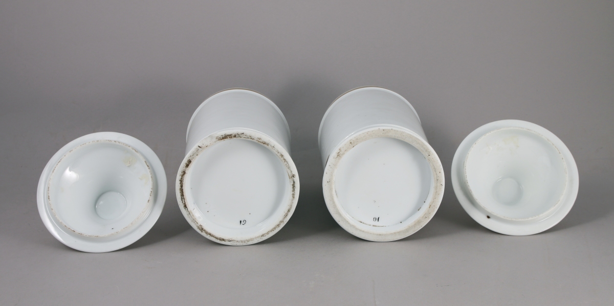 (usures à l'or, sauts sur l'émaillage au niveau des inscriptions, éclat sur la base de l'un des pots)