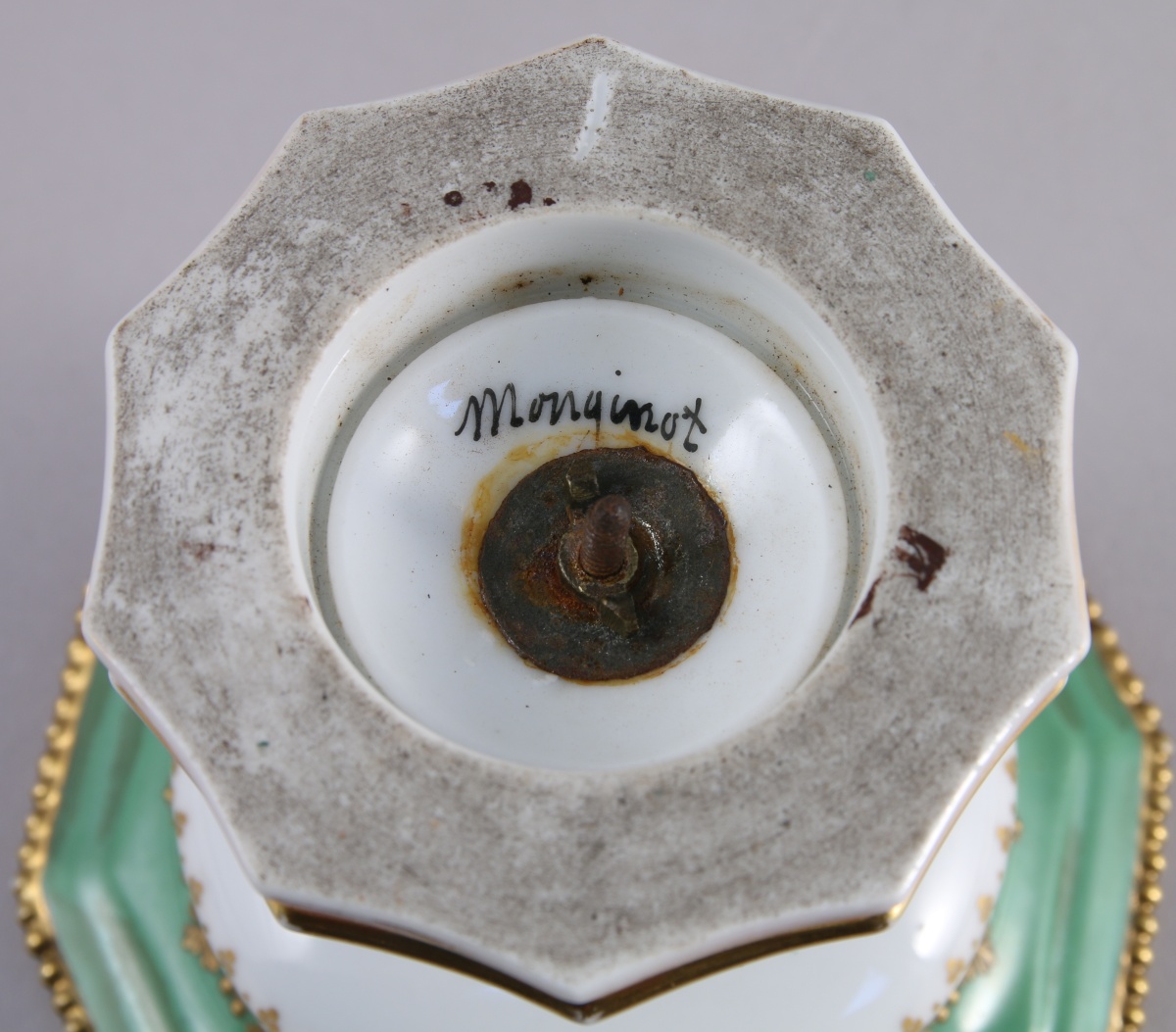 Située au 132, rue du Faubourg Saint-Denis à Paris, la manufacture de porcelaines de François Antoine Monginot acquiert ses lettres de noblesse sous l'Empire et la Restauration. Elle livre notamment un service au duc d'Orléans, futur roi Louis-Philippe, pour son château de Dreux.