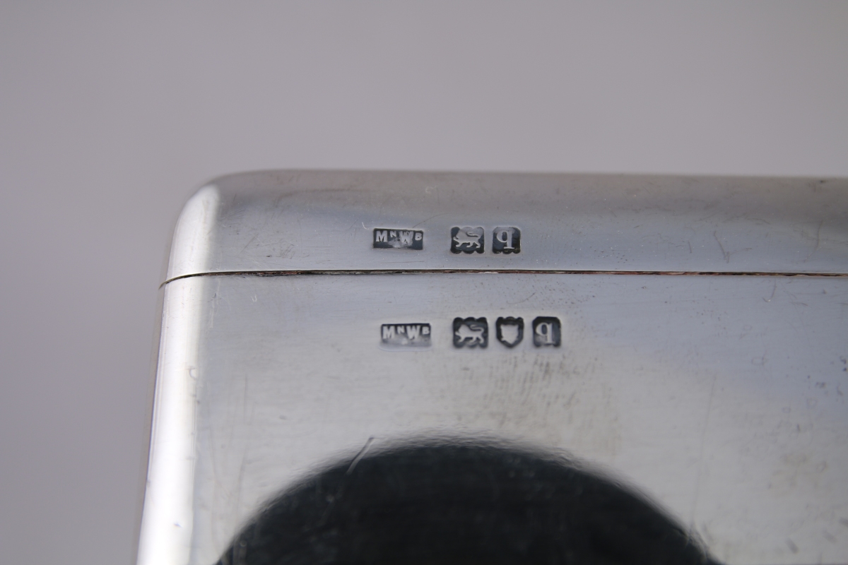 BOITE à CIGARETTES en argent, l'intérieur compartimenté en bois exotique.