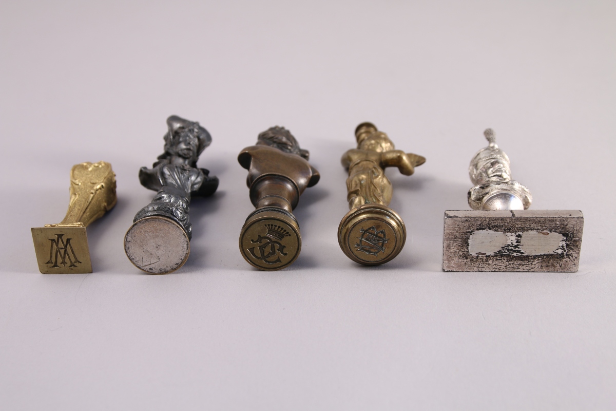 - Cachet en métal argenté figurant un buste de hussard de l'Empire. Haut. 8 cm.