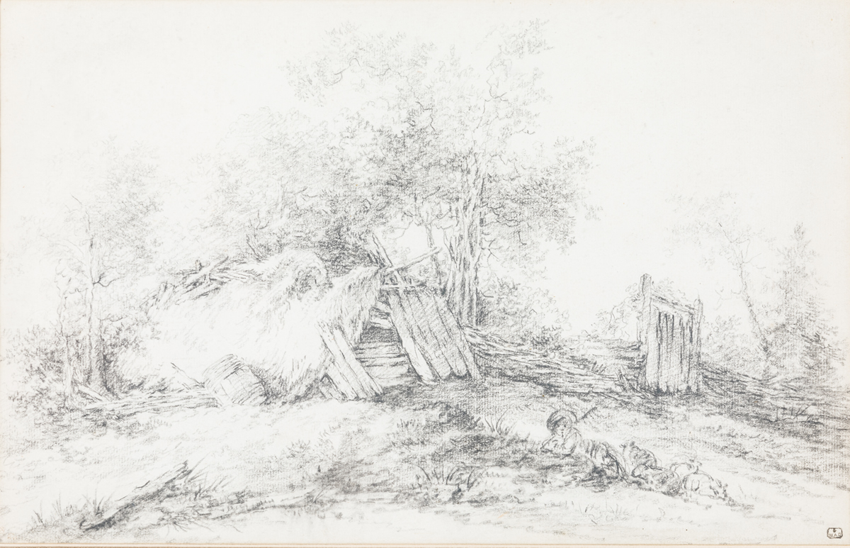 Deux dessins, un annoté " Boucher " en bas à gauche et très insolé.