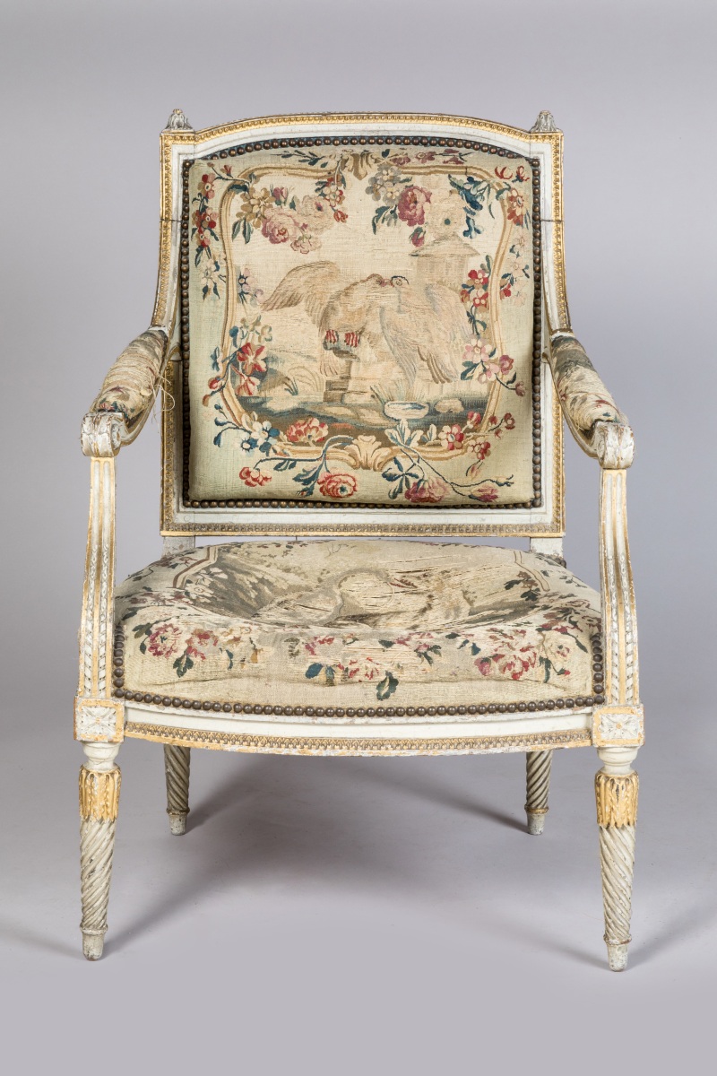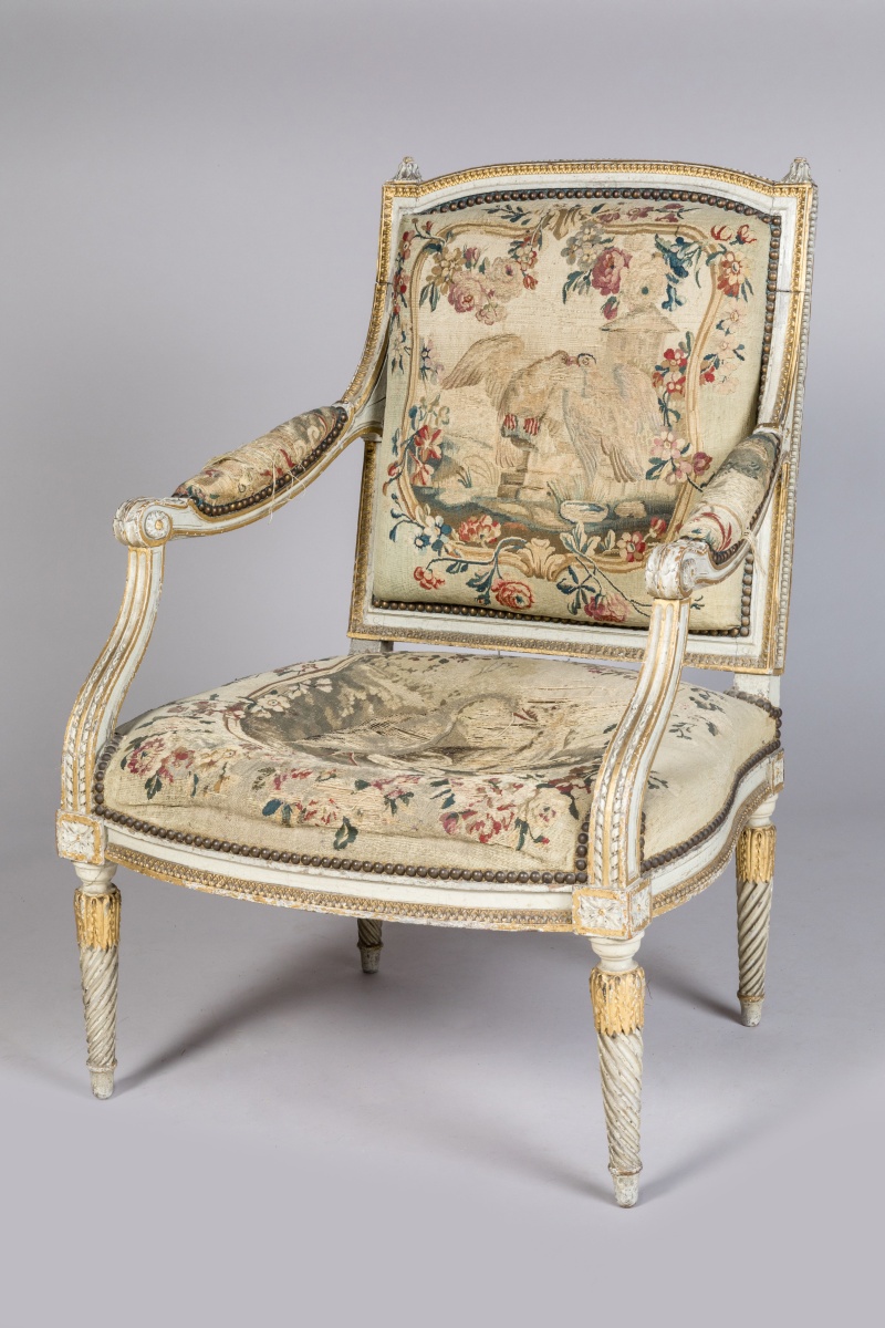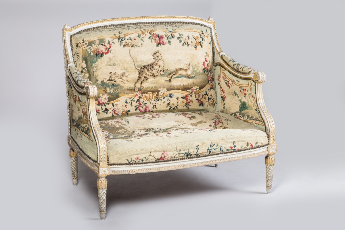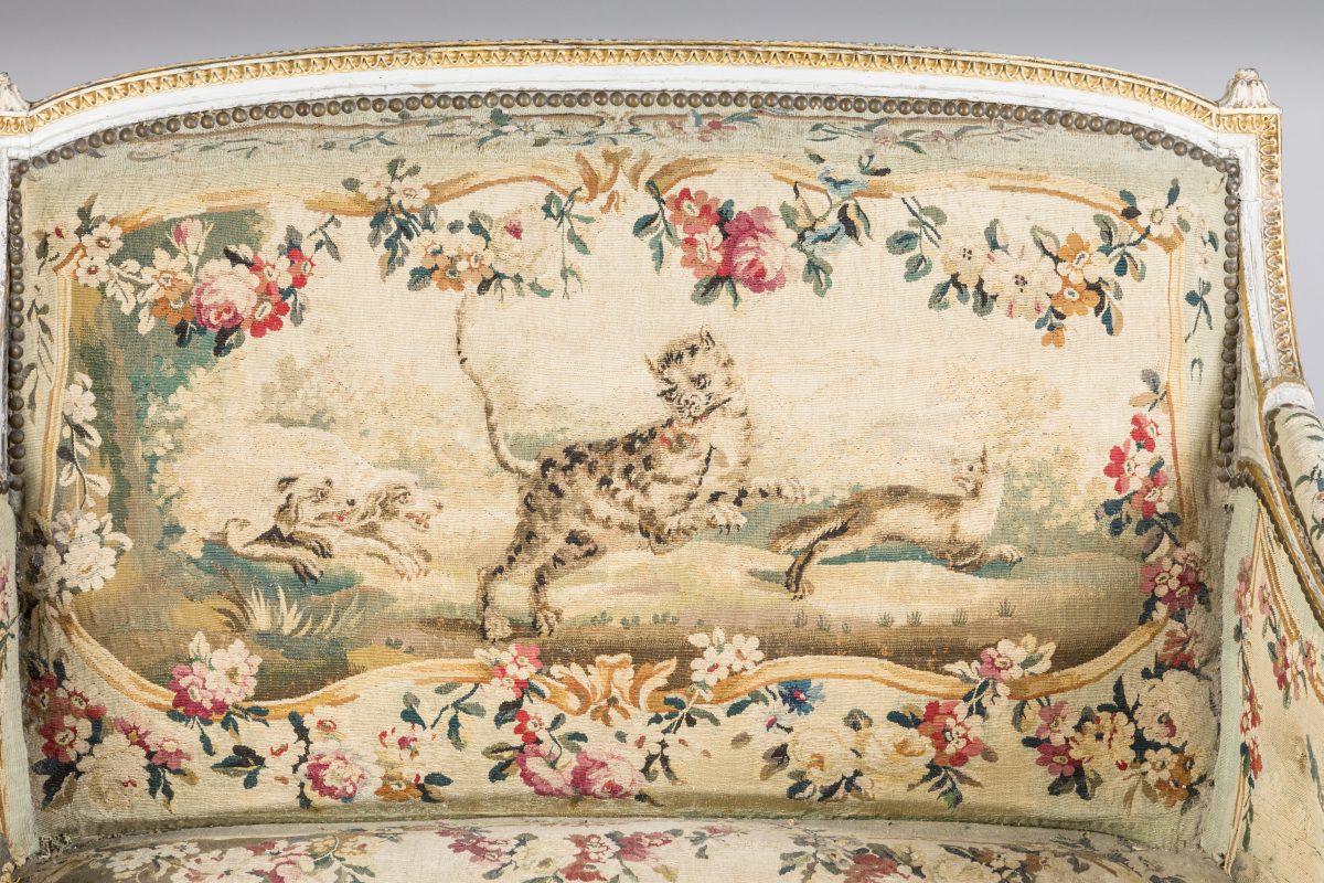 Jean de la Fontaine (1621-1695), s'inspirant d'Ésope publie à partir de 1668 les Fables qui le font accéder à la renommée. Mettant en scène des animaux, il inspire les peintres et illustrateurs de son temps. Jean Baptiste Oudry (1686-1755), peintre de la vènerie royale de Louis XV, entreprend entre 1729 et 1734 de traduire l'œuvre de la Fontaine en dessins. Ces cartons sont tissés seize fois entre 1736 et 1777, à la manufacture de Beauvais puis à celle des Gobelins. Aubusson s'inspire de ce travail dans la seconde moitié du XVIIIe siècle pour garnir les sièges.