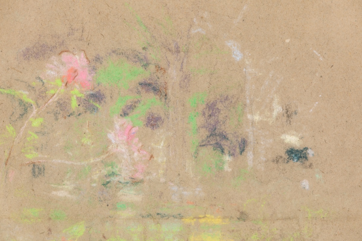 Edouard VUILLARD. Flowers alongside the pond. Pastel. Monogrammed stamp lower right.