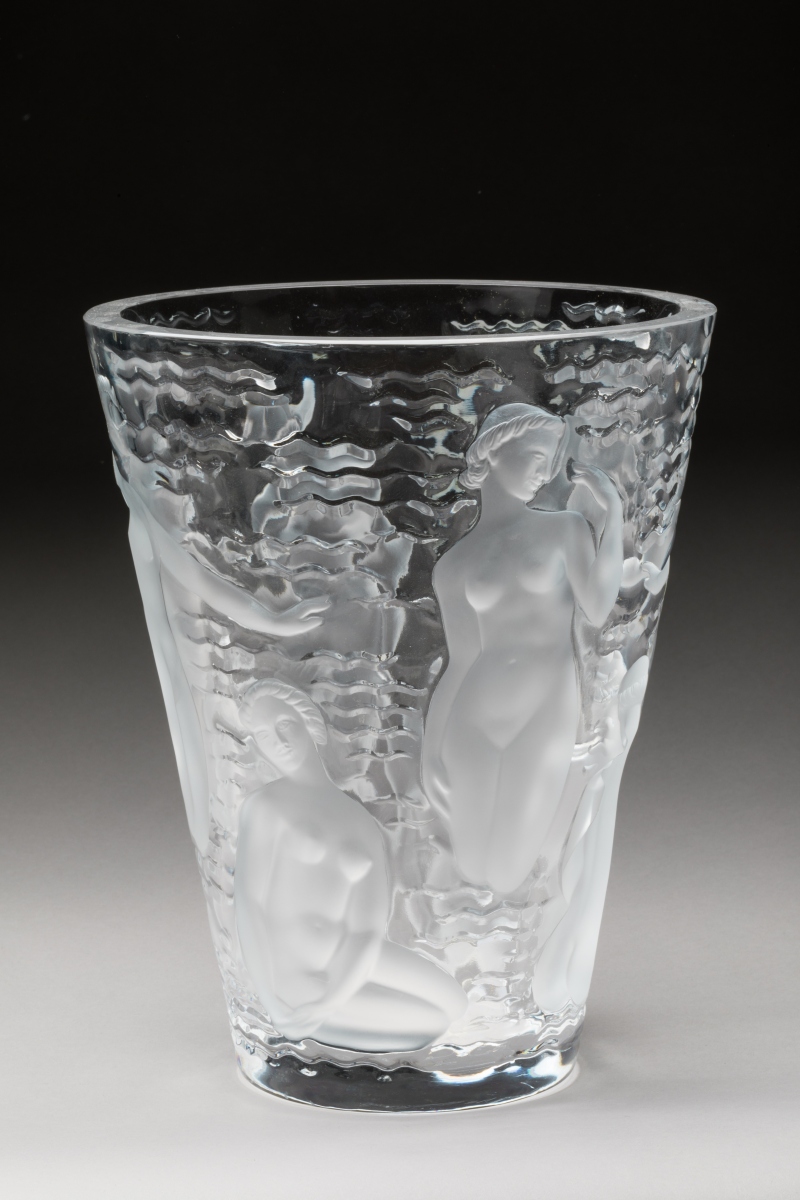 Bibliographie: Félix Marcilhac, "René Lalique, Catalogue raisonné de l'oeuvre de verre", éd. de l'Amateur, Paris, 1994 précise p. 470: "dénomination ("Ondines") reprise après 1951 pour un autre modèle de vase plus grand (24 cm) - modèle non identifié". Il s'agit de notre vase.