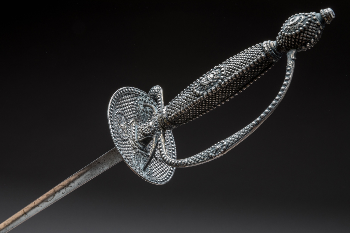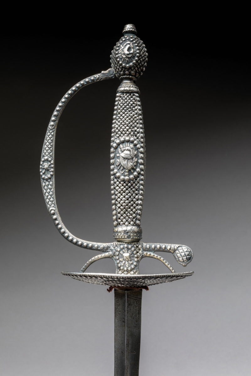 A Louis XVI silver OFFICER COURT SWORD. Triangular cross blade. Paris, 1781.