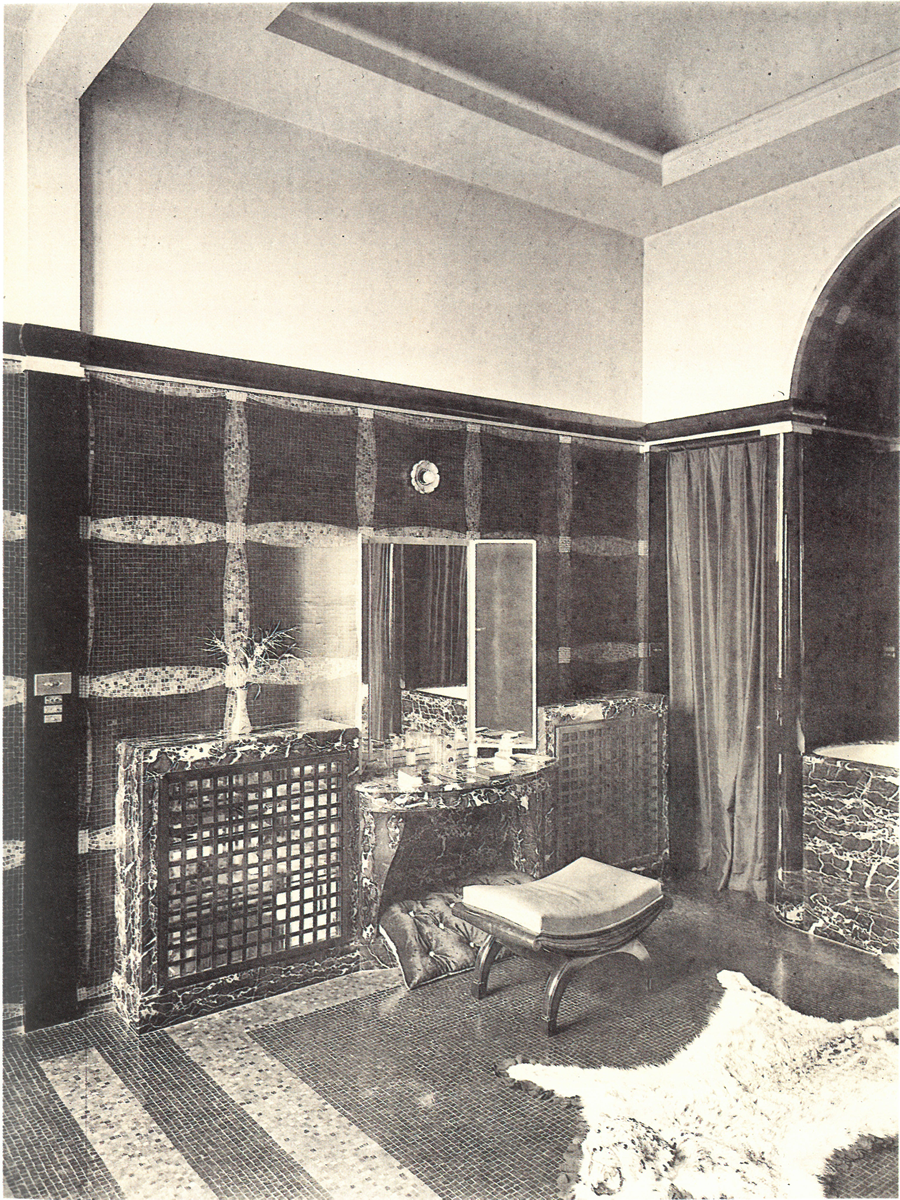 Bibliographie: Florence Camard, "Süe et Mare et la Compagnie des arts français", éd. de l'Amateur, 1993, modèle n°49 reproduit in situ dans la salle de bain de la rue de Lille p. 101.