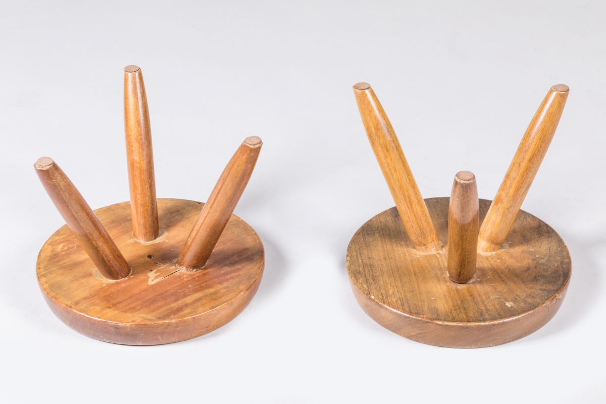 de forme tripode basse en bois massif à assise circulaire légèrement creuse.