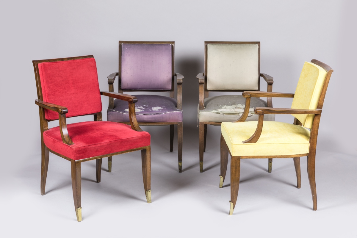 Provenance: villa Tiffonet à Châtres-sur-Cher ; acquis auprès de la Galerie Jean Pascaud, 14 septembre 1949, sous la description "4 fauteuils en noyer Frs 92.000" ; par descendance.