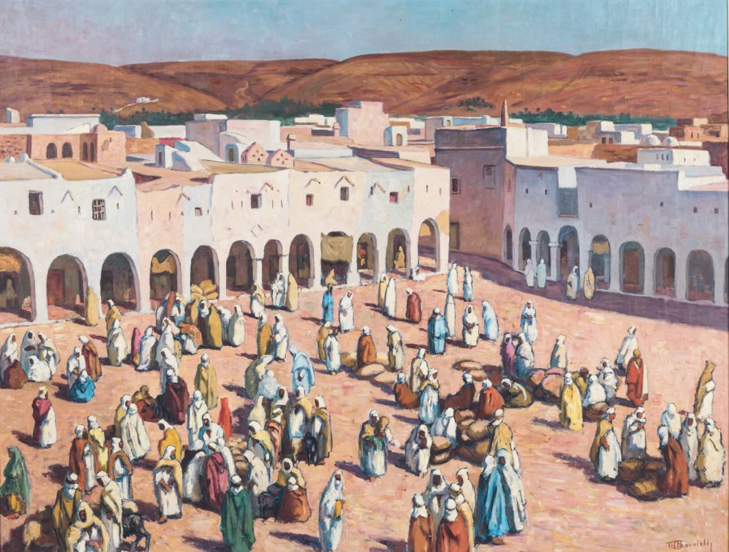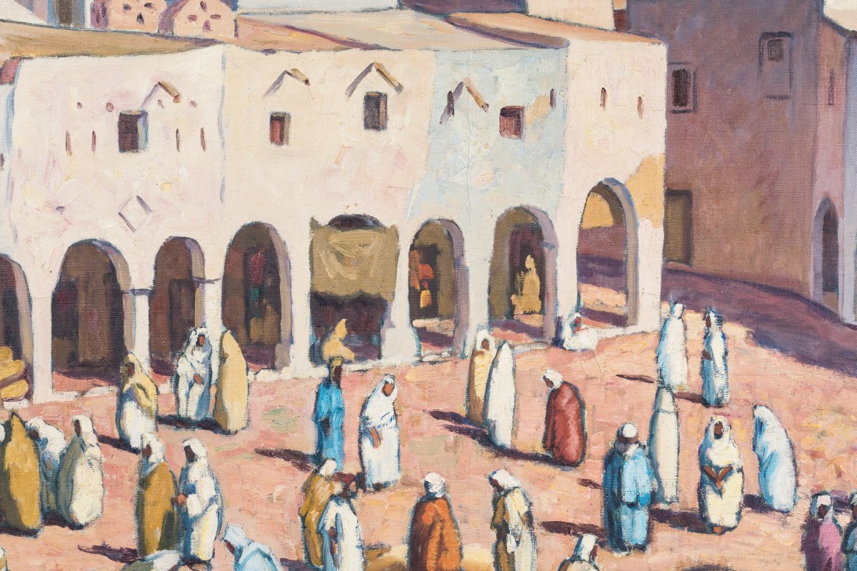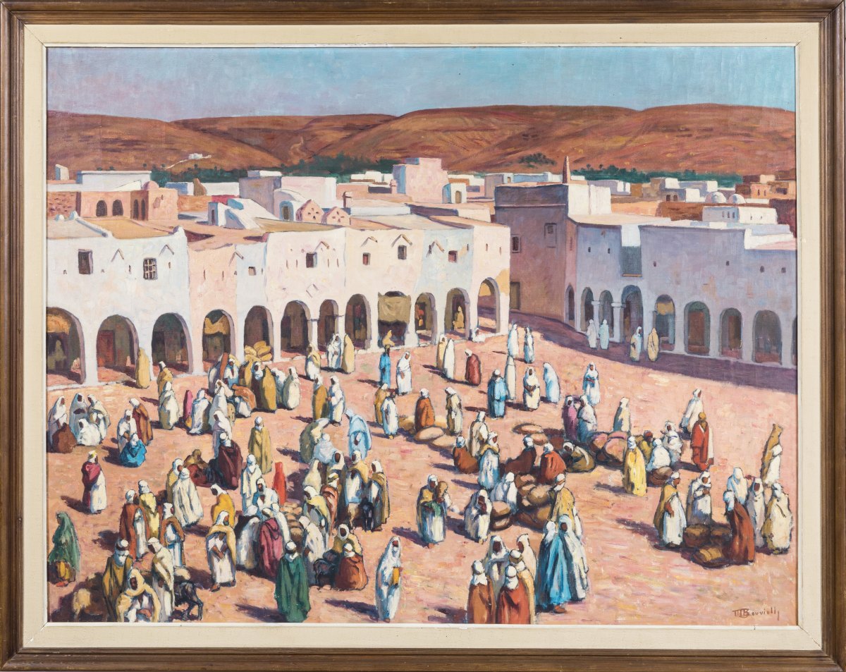 Maurice BOUVIOLLE (Beauvais, 1893 - Marseille, 1971)"Marché à Ghardaïa"Huile sur...