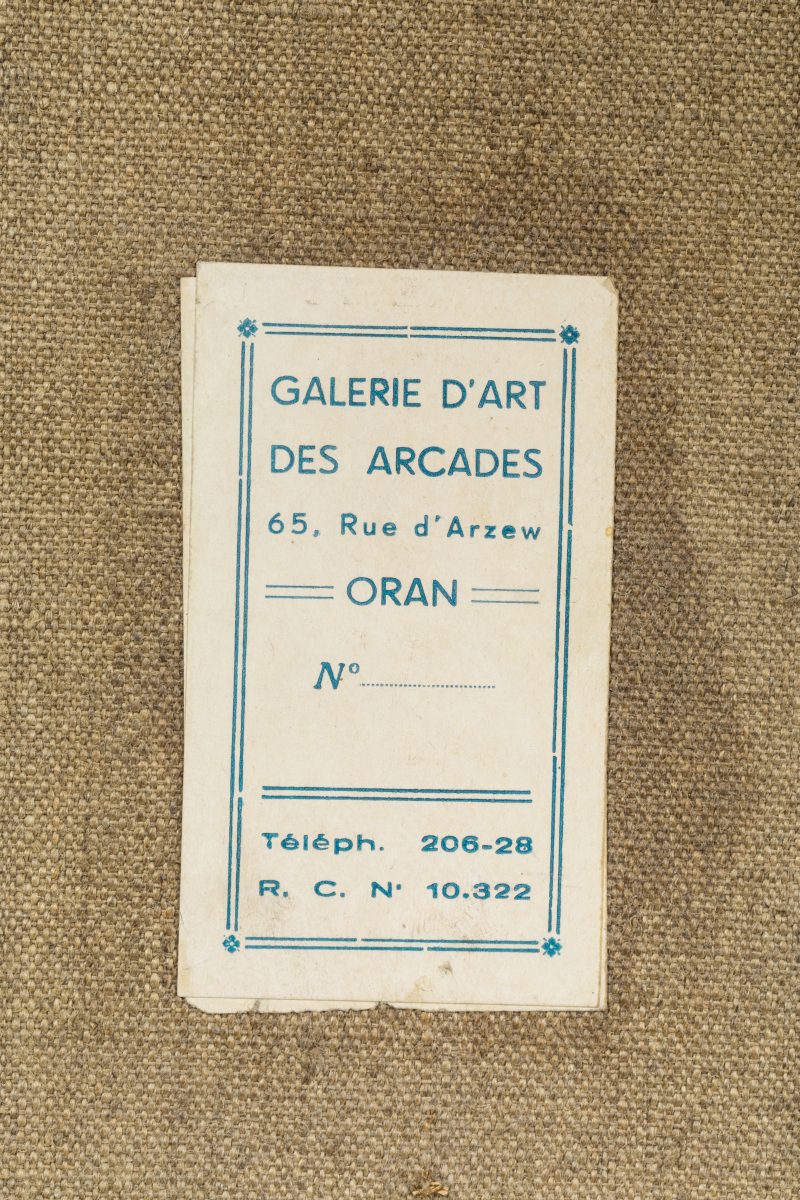 Huile sur toile signée en bas à droite. Titrée au dos, étiquette de la Galerie d'Art des Arcades à Oran avec le numéro "111G".
