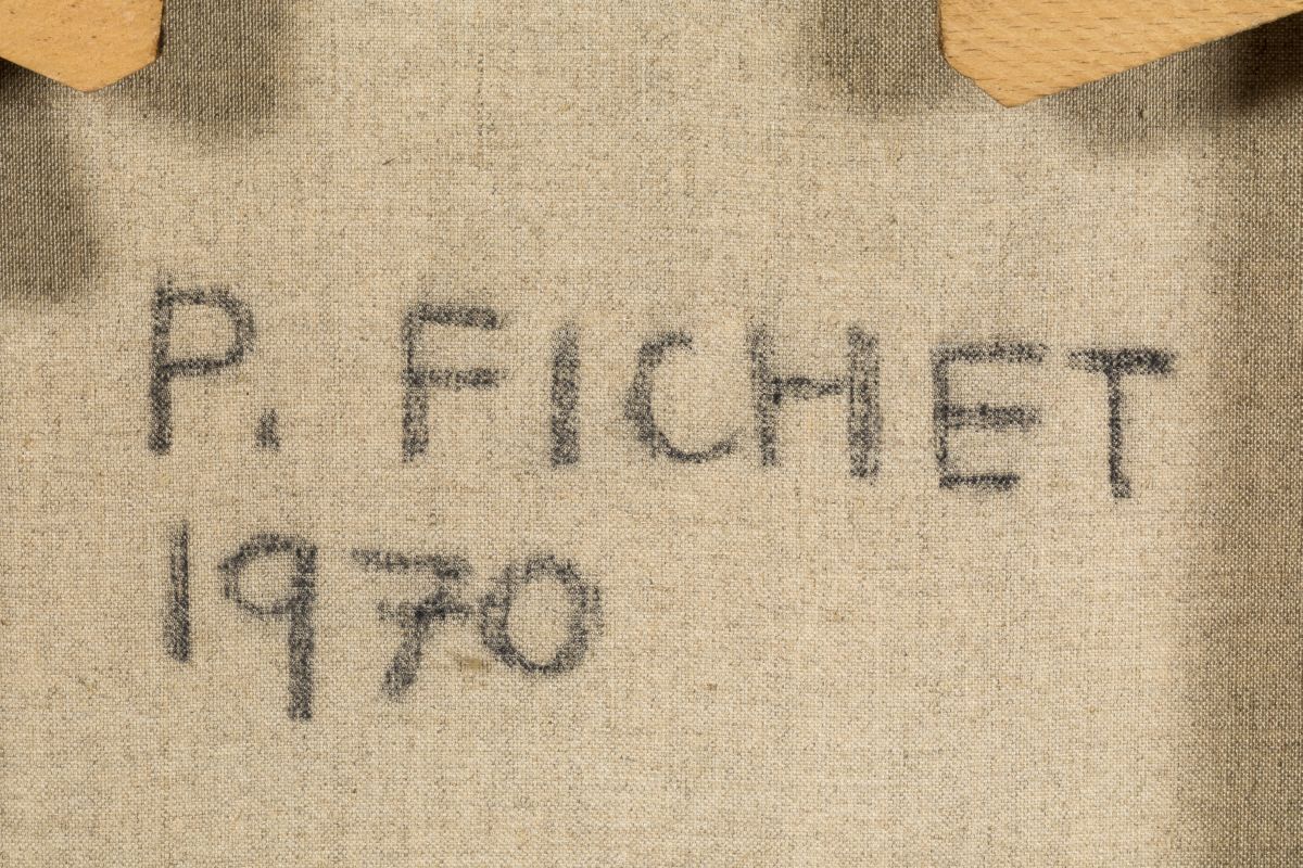Fichet est l'auteur de "compositions géométriques solidement structurées, dont l'exigence intellectuelle et une préoccupation spirituelle flirtent avec un jansénisme qu'il ne renie pas. (...) Il superpose alors des couches de plus en plus fines pour parvenir à des effets de transparence suggérant une spatialité infinie". Lydia Harambourg.