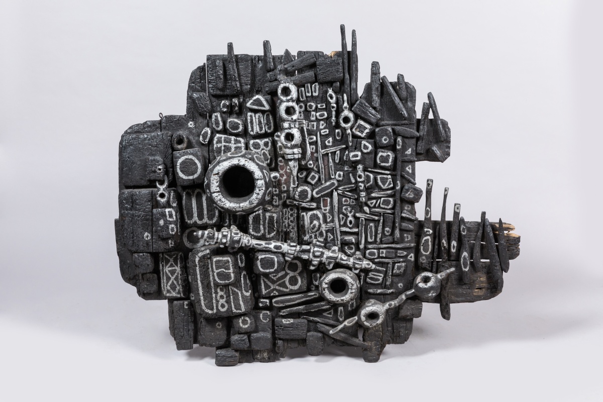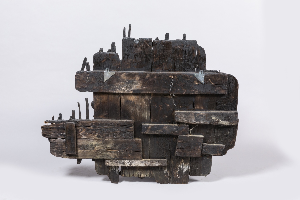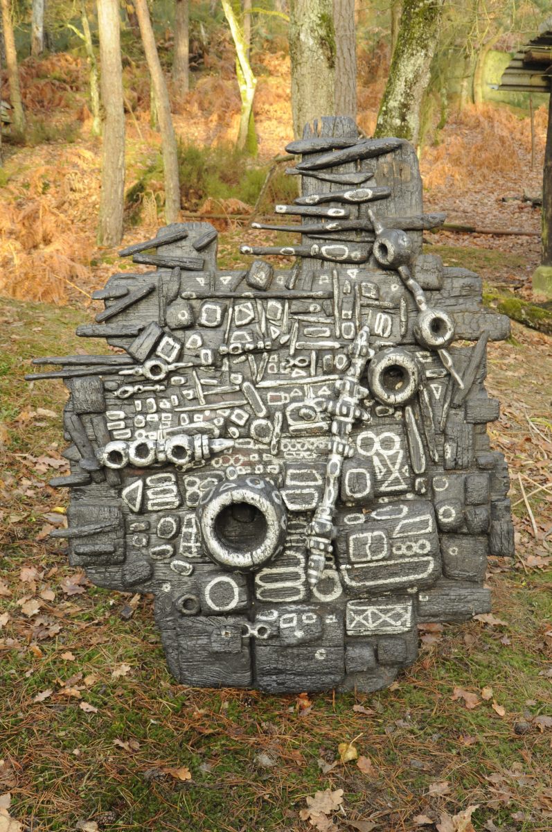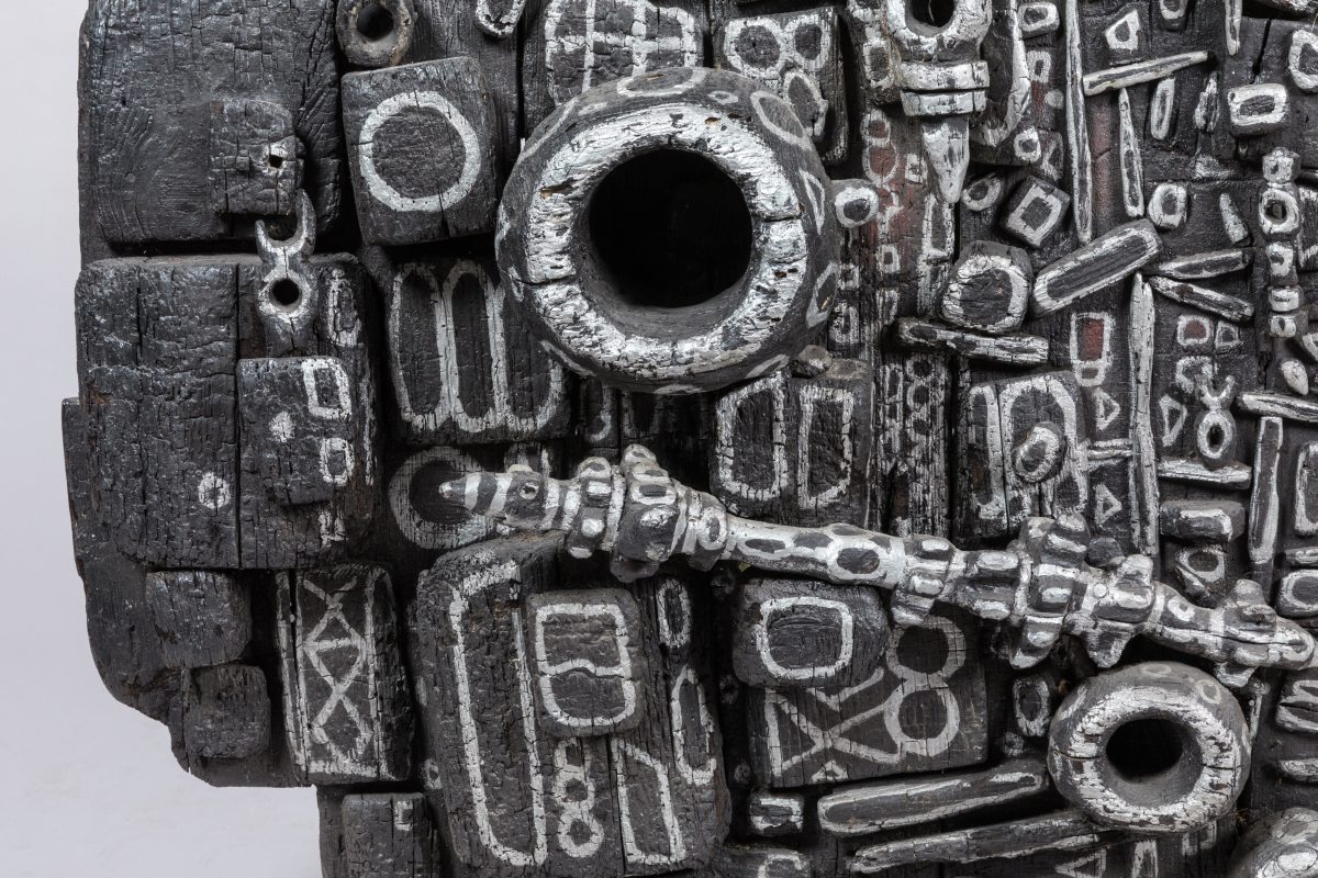 en bois brûlé peint.