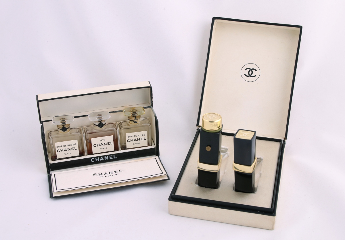 Joint: un coffret de la maison contenant un flacon-vaporisateur et un étui de rouge à lèvres. (PdO).