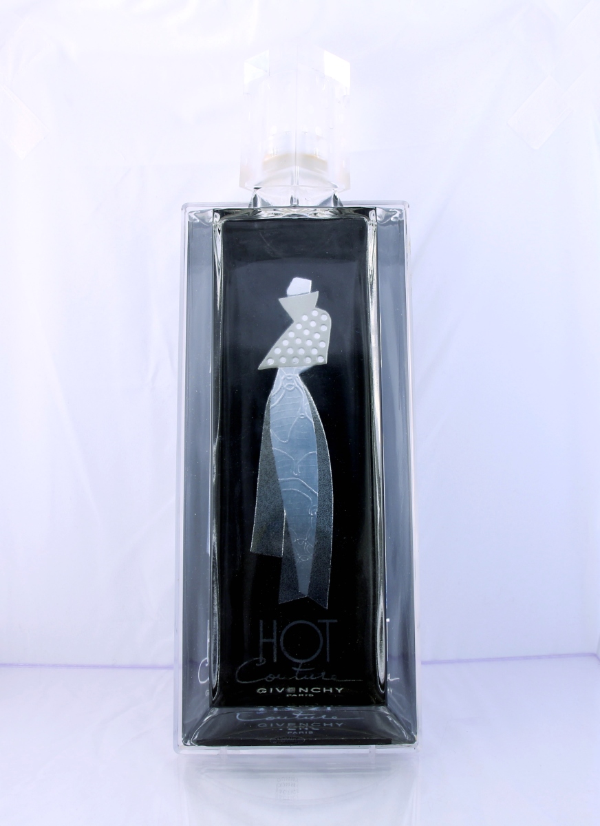 Flacon publicitaire décoratif en verre incolore pressé moulé figurant un cadre porte-photo stylisé dessiné par Serge Mansau.