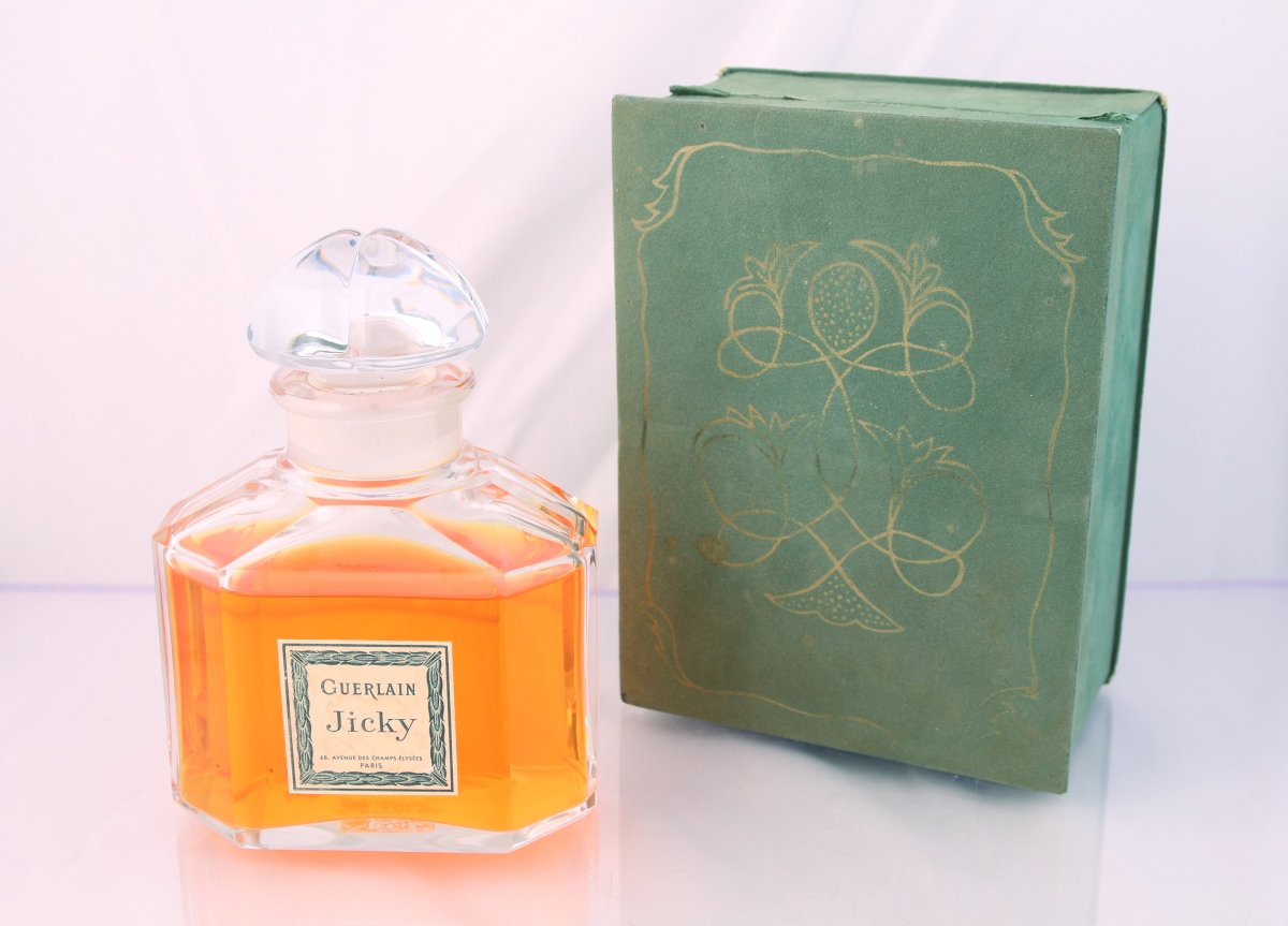 Présenté dans son coffret rectangulaire en carton gainé de papier feutrine vert mousse, titré, intérieur satin blanc, flacon en cristal incolore pressé moulé de Baccarat de section rectangulaire, sa panse à pans coupés coiffée de son bouchon quadrilobé, avec son étiquette aux lauriers. numéroté.