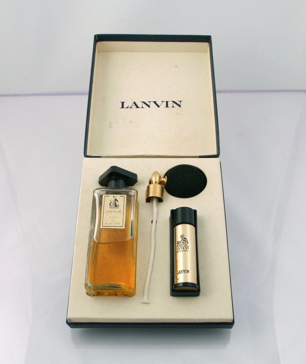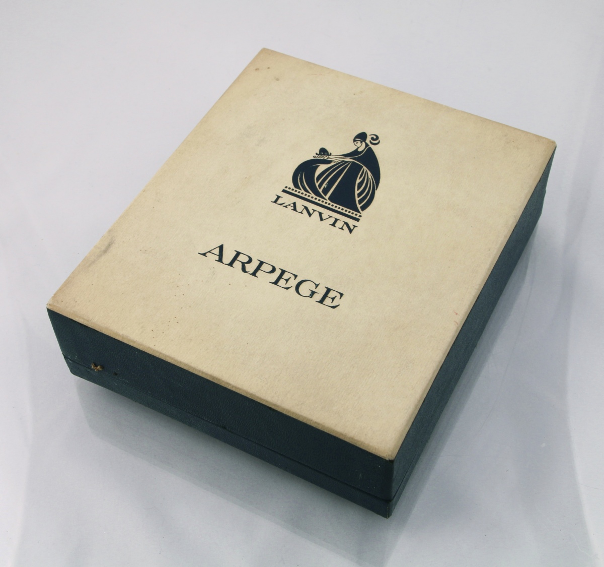 Coffret rectangulaire en carton titré et siglé contenant un flacon d'eau Arpège et un vaporisateur de sac assorti. (PdO)