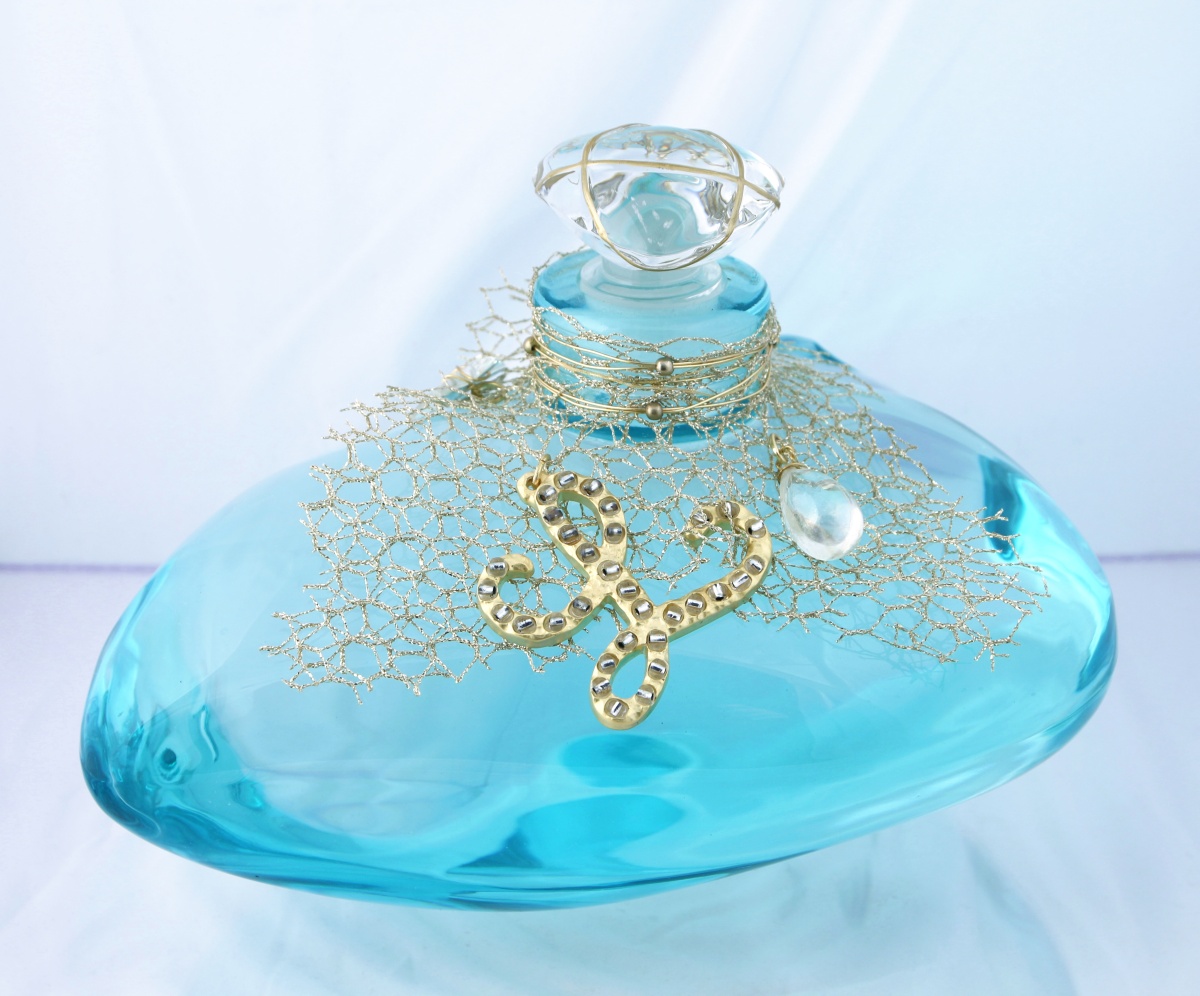 Flacon publicitaire décoratif figurant un galet stylisée dessiné par Alain De Mourgues.
