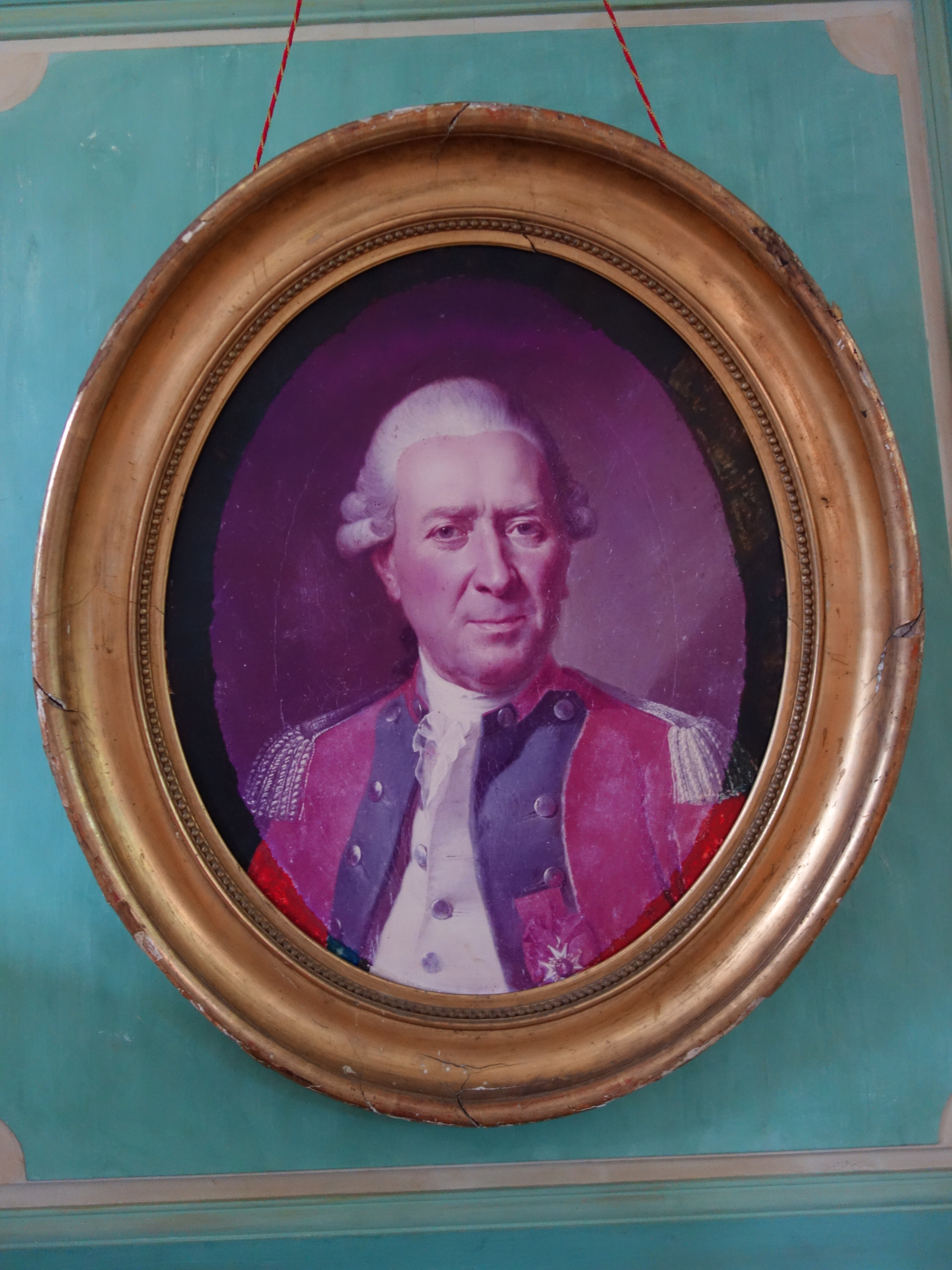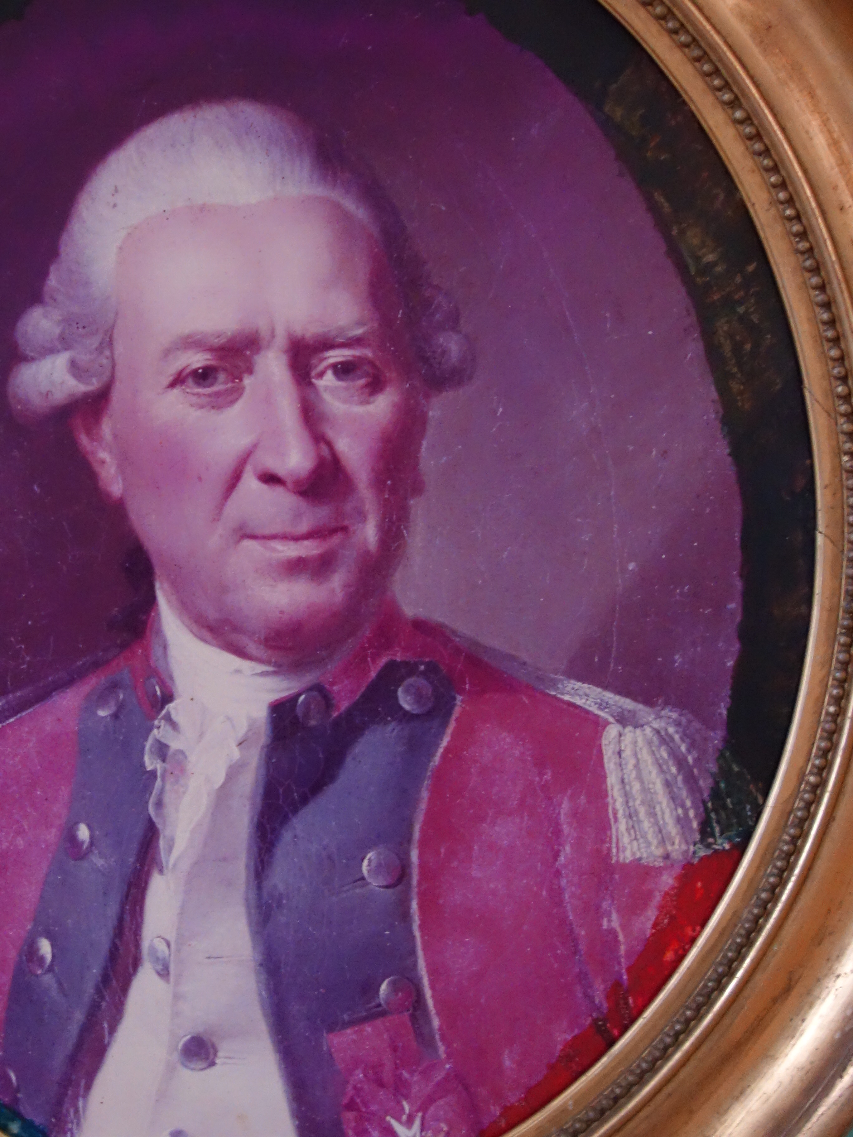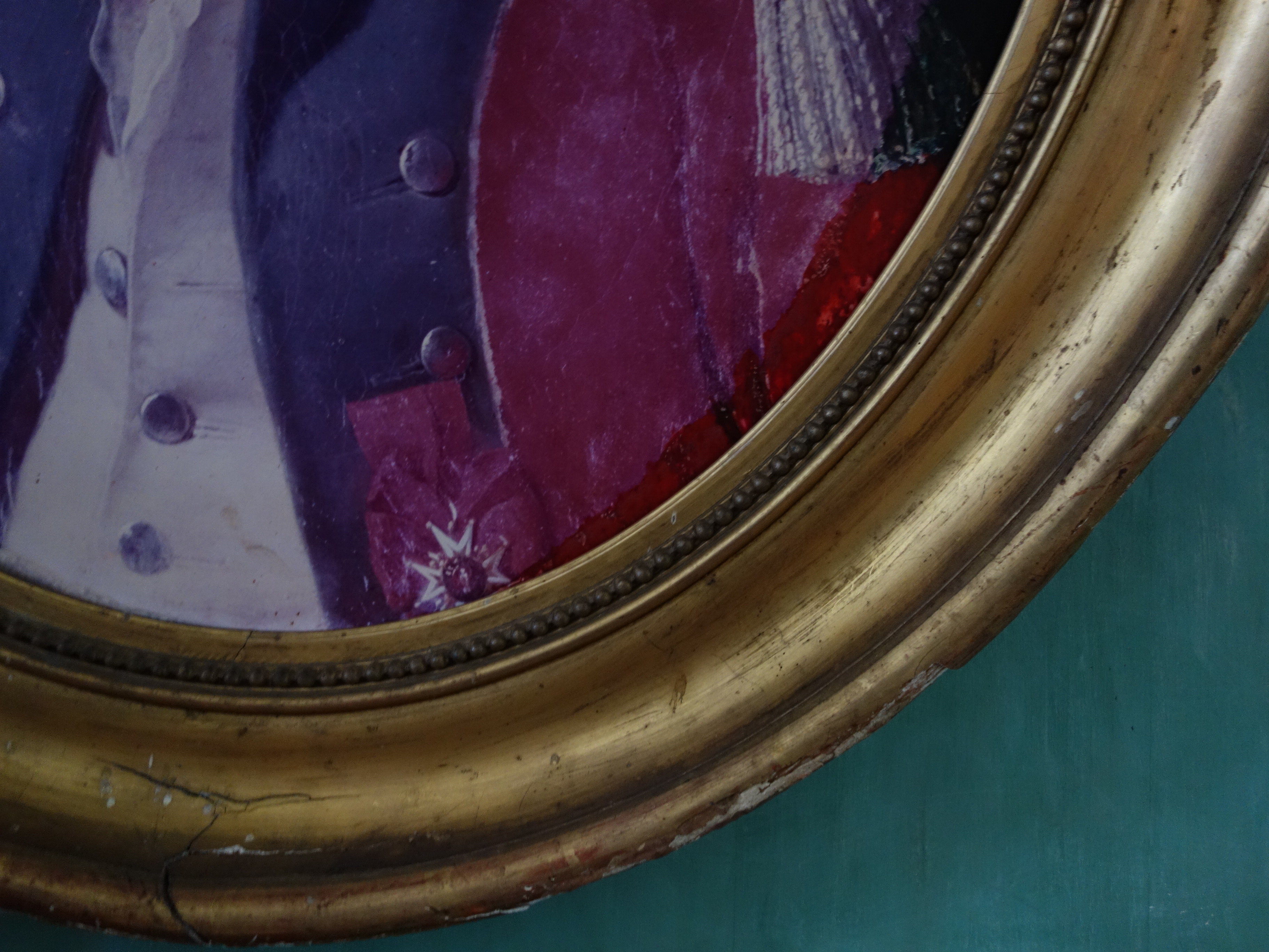 CADRE ovale en bois doré orné dune reproduction photographie dun portrait dofficier.