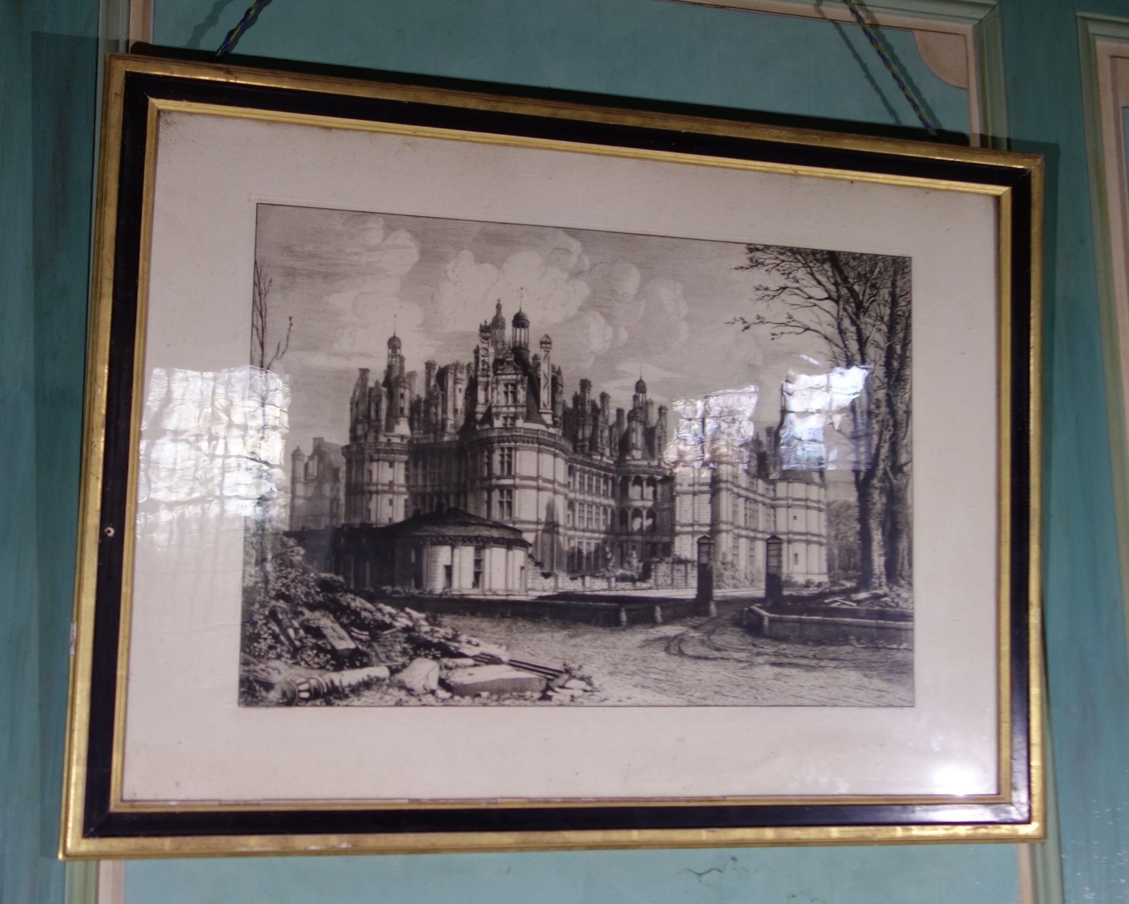 JOINT: VUE du CHÂTEAU de CHAMBORD à leau forte par Octave de Rochebrune.