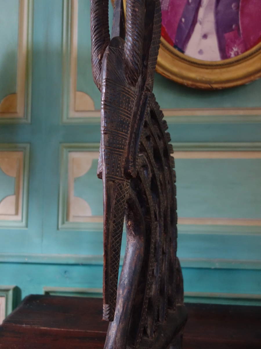 MALI, culture BAMBARA (Bamana). Antilope mâle Ti y Wara. Bois sculpté. Sommet de casque de danse pour favoriser les moissons