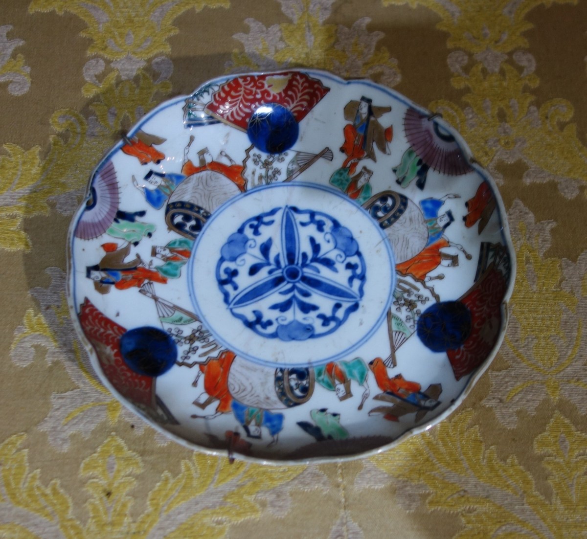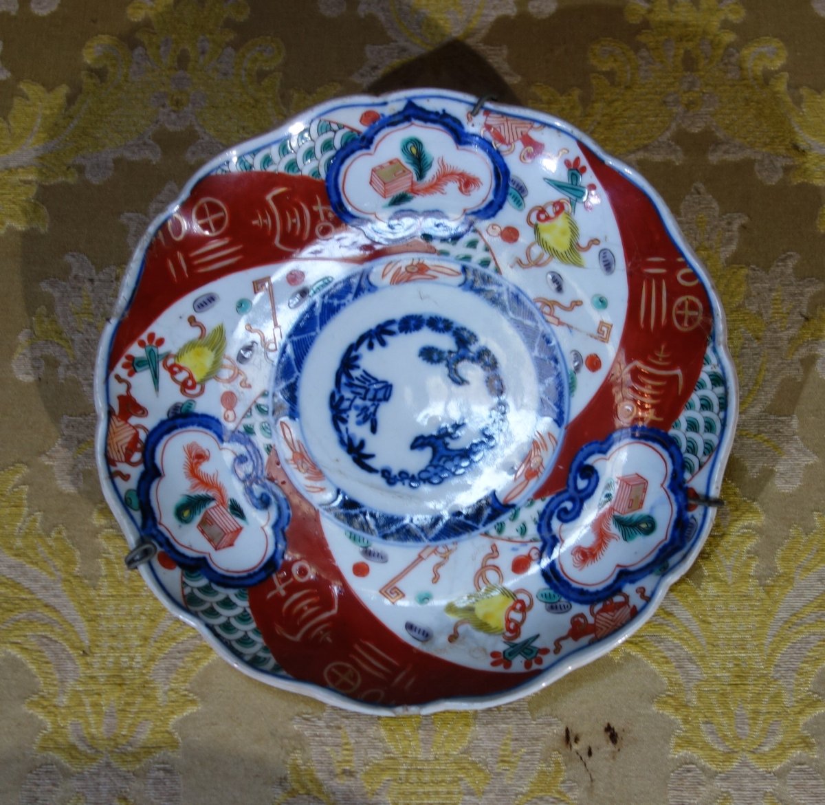 JAPON. Cinq ASSIETTES en porcelaine émaillée à cors IMARI.