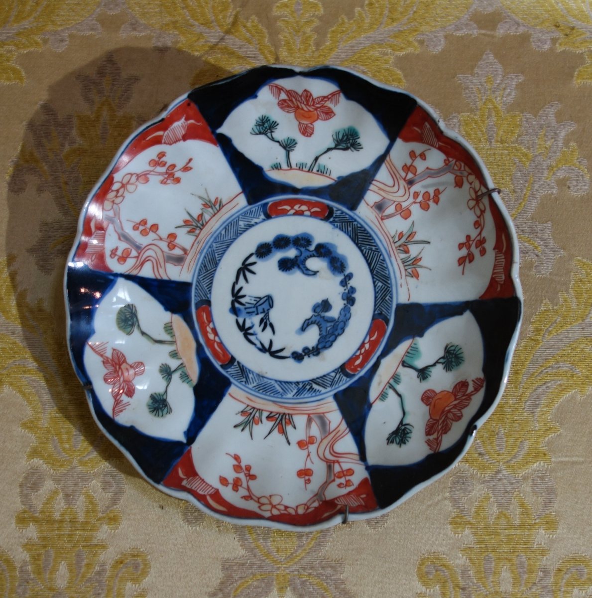 JAPON. Cinq ASSIETTES en porcelaine émaillée à cors IMARI. Diam....