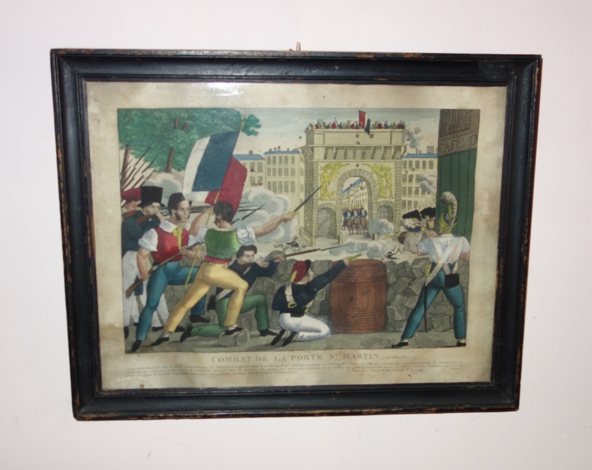 JOINT: Combat de la porte Saint-martin en 1830, lithographie (24 x 32 cm).